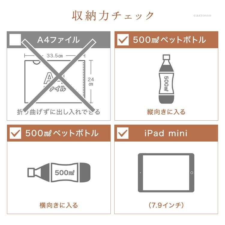 A4サイズが入るタイプはお仕事をしている女性に人気。ブラックやブラウンなど、ビジネスシーンで使いやすい基本のカラーが揃っています。