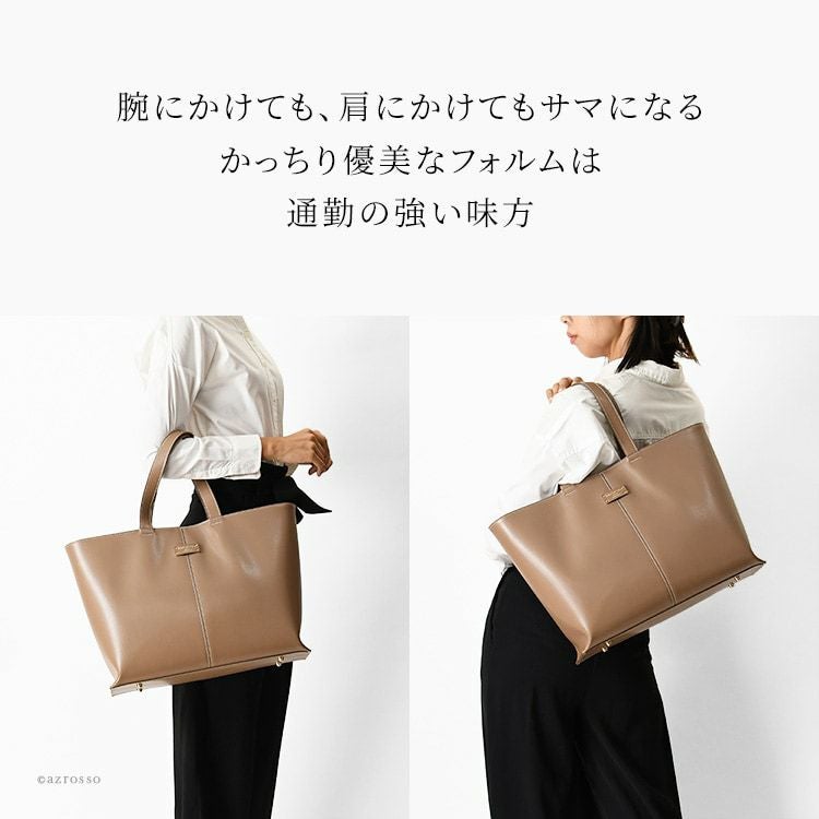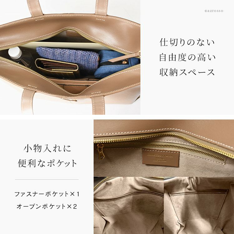 ▼特徴:トートバッグ トート バッグ ビジネスバッグ ビジネス バッグ 大容量 マチあり マチ広 横長 横型 大きめ 大きい たくさん入る 自立 底鋲 ファスナー付き 革 肩掛け 肩かけ