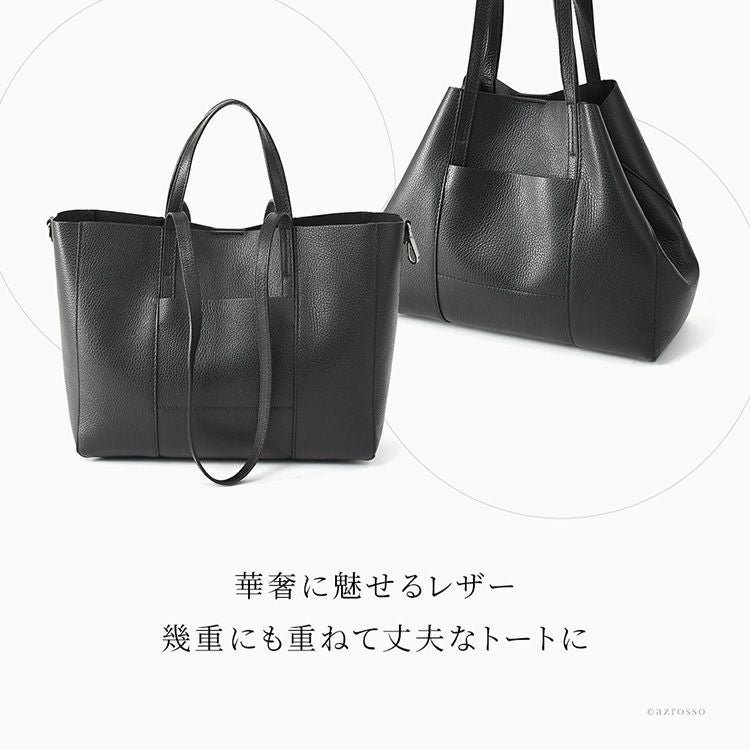 5. レザー トートバッグ レディース ダブルハンドル 軽量 a4 大きい おしゃれ マーロンフィレンツェ ブラック イタリア製