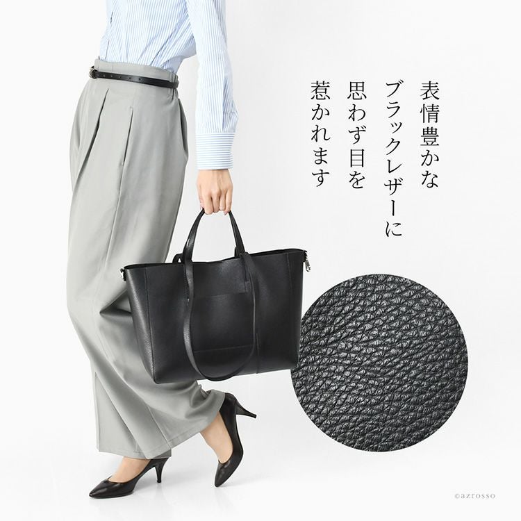 4. レザー トートバッグ レディース ダブルハンドル 軽量 a4 大きい おしゃれ マーロンフィレンツェ ブラック イタリア製