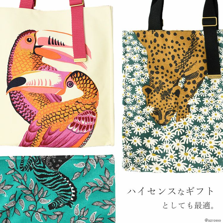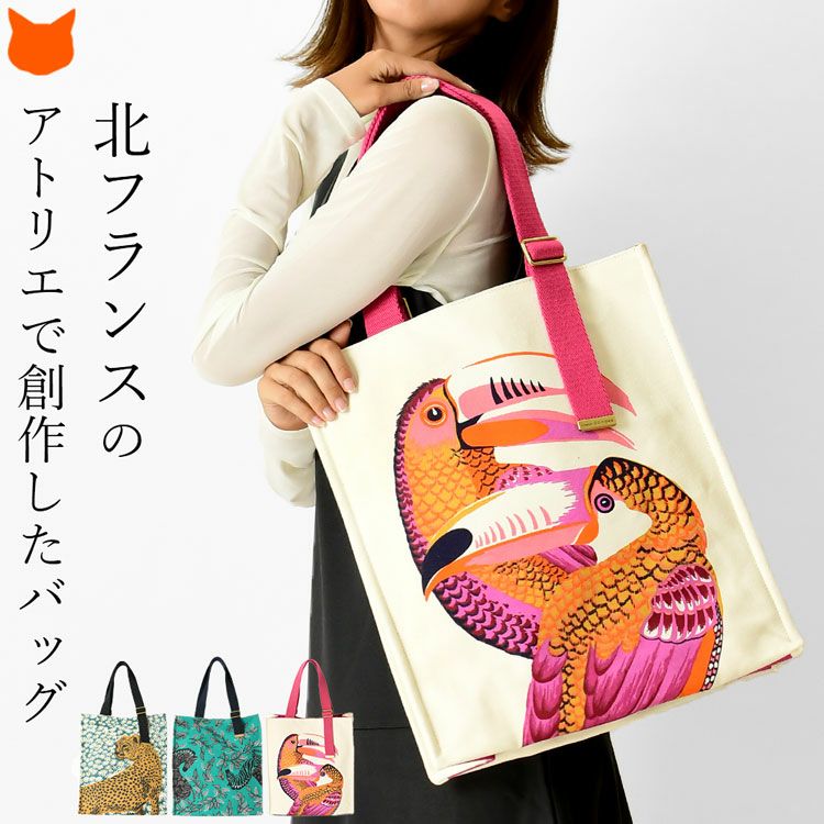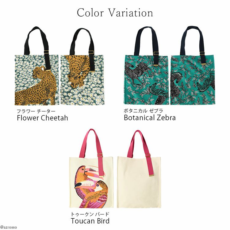 ▼特徴:トートバッグ|2way|肩掛け|マチ広|A4収納|大容量|沢山入る|縦長|縦型|花柄|お花畑|アニマル柄|動物|チーター|草原|シマウマ|オオハシ|総柄|軽い|軽量