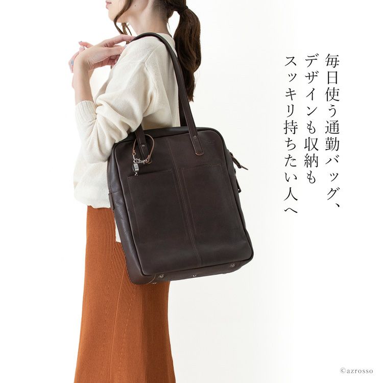 国産の上質な本革を用い、清川商店の職人が丹念に仕立てた日本製レザートート。端正な佇まいと機能美。2WAY仕様でビジネスにも。印象に差がつく、30代・40代の女性の装いにふさわしい一品。 本革 レディース ビジネストートバッグ 日本製 2WAY レザー PC収納 15インチ KIYOKAWA 清川商店 仕事用 おしゃれ ビジネスバッグ