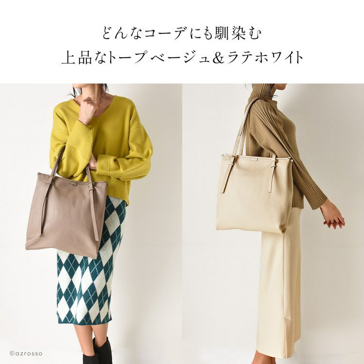 イタリアのアルチザンが紡ぐ洗練バッグブランド loristella(ロリステッラ)の大きめトート。長さ調節可能なストラップ、キズがつきにくいシボ加工の上質レザーバッグは通勤 オフィスに最適 日本限定モデル トートバッグ 通勤 バッグ 縦型 A4収納 大容量 本革 イタリア製 ビジネスバッグ トープ ベージュ ホワイト