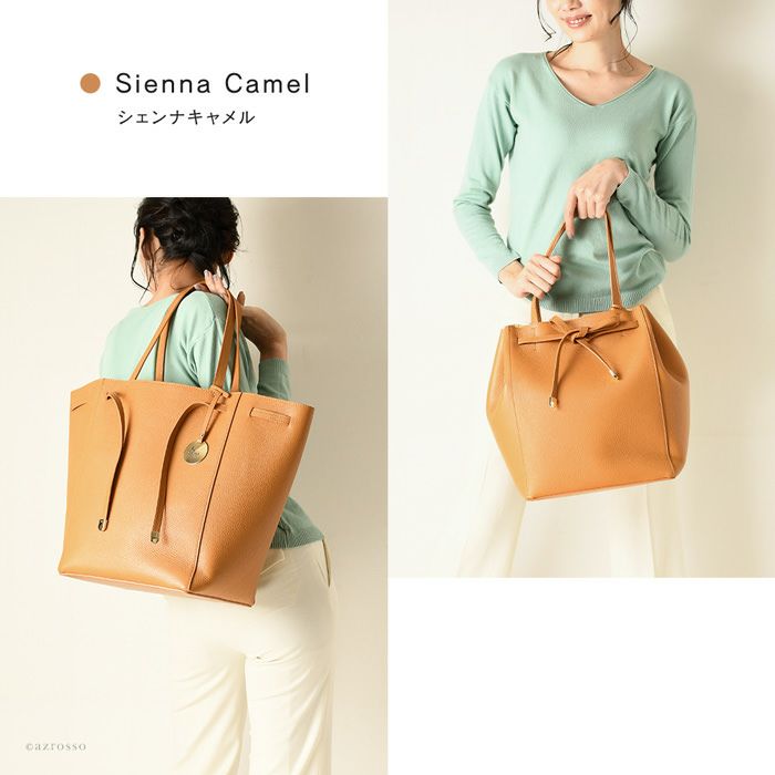 日本の職人が生み出す逸品、働く女性の為の美しいレザートート。上質なイタリアンレザーが活きるシンプルなデザインで通勤をよりスタイリッシュに。仕切り、バッグインバッグ、クラッチバッグになるポーチ付き 日本製 レザー トートバッグ 2way a4収納 ビジネスバッグ 通勤 本革 トープ キャメル 黒 ブラック アイボリー バッグインバッグ付き 底鋲付き