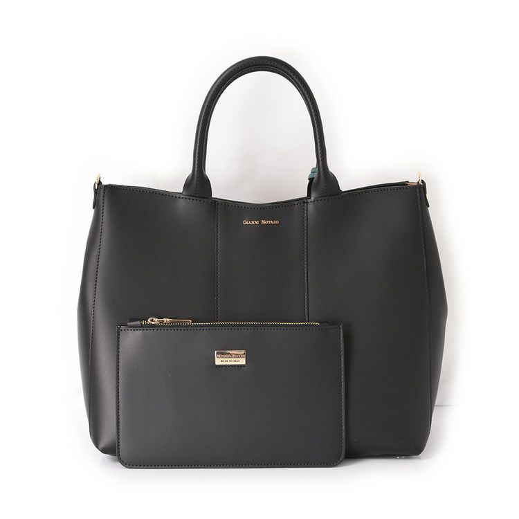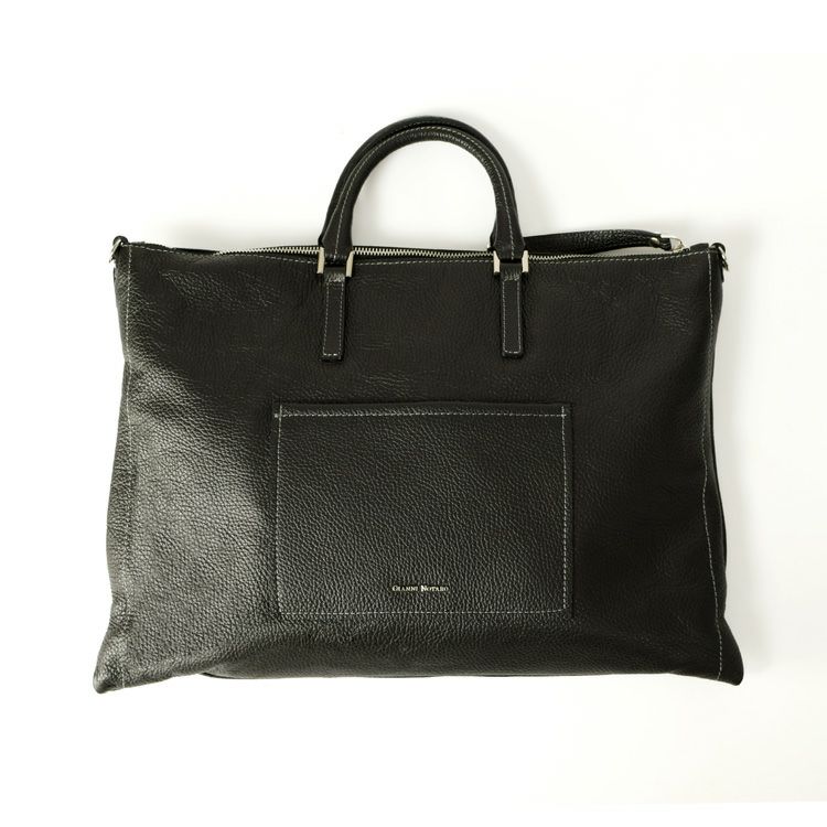 イタリアGIANNI NOTARO(ジャンニ・ノターロ)より、きちんと感のあるシンプルなデザイン、A4収納可能、底鋲付きで自立、天ファスナー、ポーチ付きで、お仕事にぴったりの2wayトートバッグ 2way トートバッグ ビジネスバッグ a4 通勤 肩掛け ショルダーバッグ ビジネスショルダー 本革 イタリア製 レザー 黒 ブラック トープ 天ファスナー 底鋲付き 自立 ポーチ付き