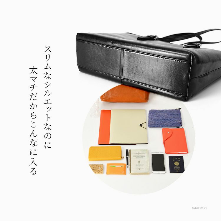 A4ジャストサイズ・薄マチの上品でシンプルなトートバッグを豊岡鞄ブランドottorossi(オットロッシ) より。ショルダーバッグとしても使える2way。傷が付きづらいシュリンク型押しレザーは毎日の通勤に最適 縦型 レザー トートバッグ 2way ショルダーバッグ A4収納 斜めがけ 本革 バイカラー 日本製 ブランド 豊岡鞄 ブラック ネイビー トープ ビジネスバッグ レディース