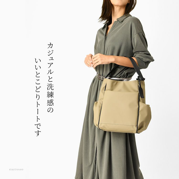 日本製 トートバッグ レディース 軽量 デューロン 通勤 丈夫 撥水 防水 縦型 ワンハンドル ブラック ベージュ
