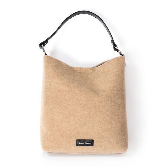 秋冬の装いに華を添えるイタリアブランド GIANNI NOTARO(ジャンニノターロ)の縦型トートバッグ。メインはふわふわ軽いフェルト素材。持ち手をレザーにすることで上品さをプラス イタリア製 トートバッグ A4対応 500g以下 軽量 ブランド ジャンニノターロ GIANNI NOTARO 縦型 ポーチ付き