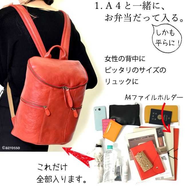 レザー リュック サック 大容量 日本製 自立 A4 対応 レディース コモドプラスト ブラック ブラウン レッド グリーン 黒 茶色 赤 緑