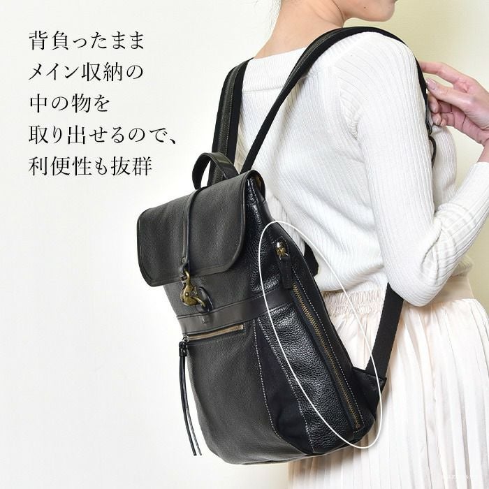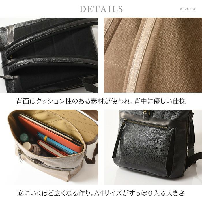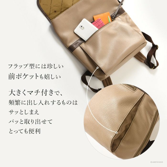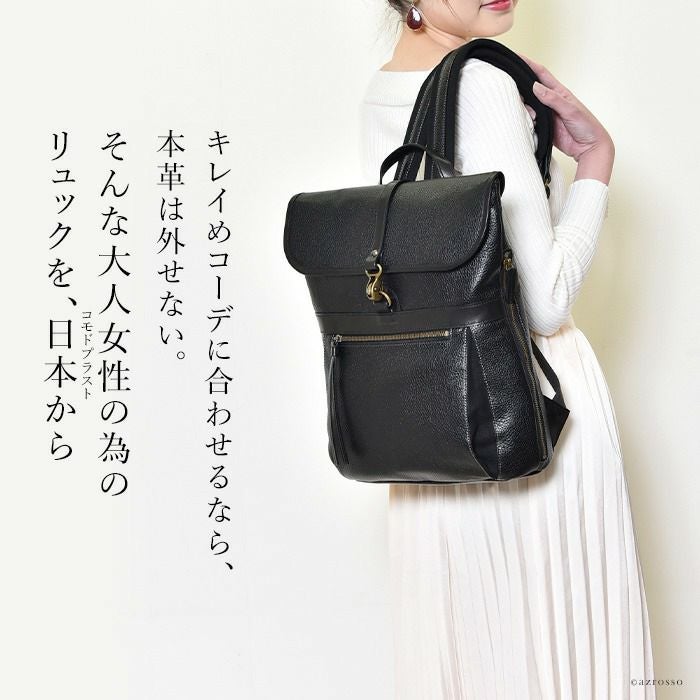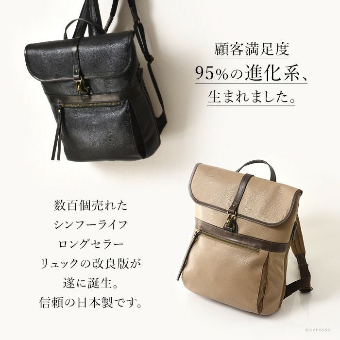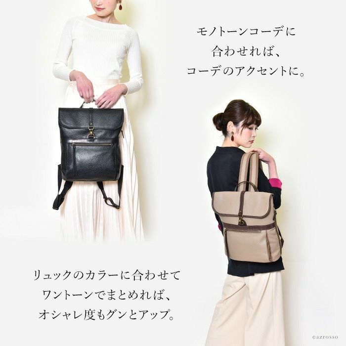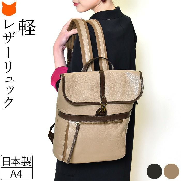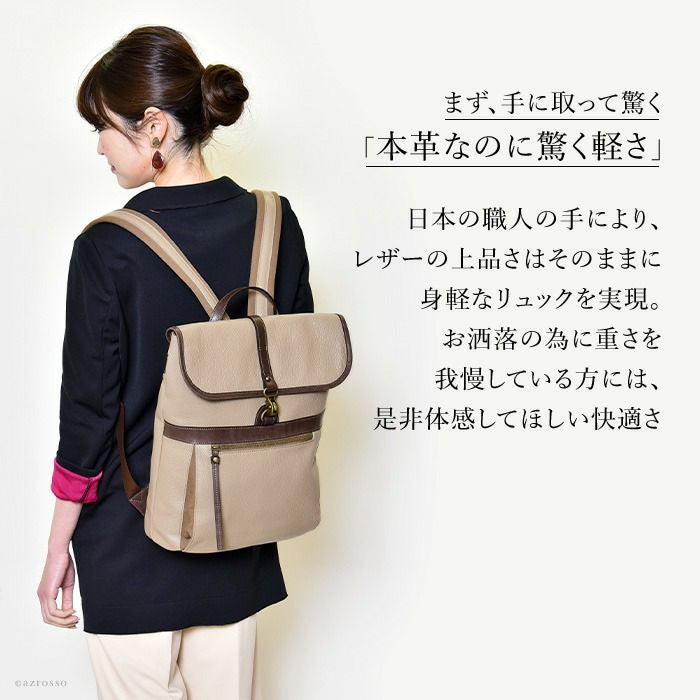 スクエア レザー リュック A4 大容量 本革 おしゃれ 日本製 黒 ブラック ベージュ アデル レディース