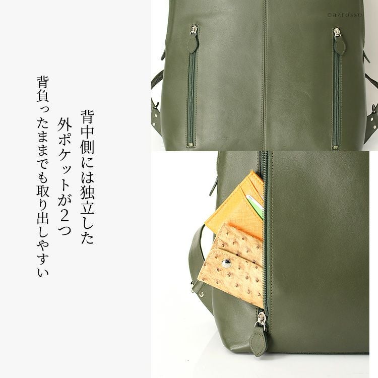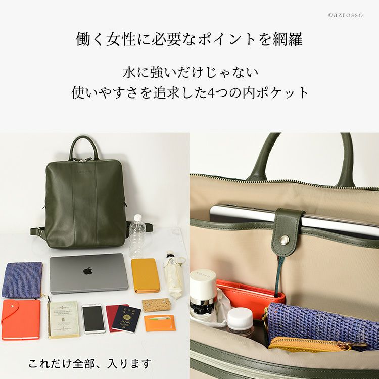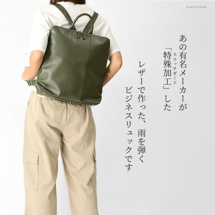 雨の日だって、ちゃんとしたレザーのビジネスバッグが必要な働く女性の為の、撥水加工リュック。