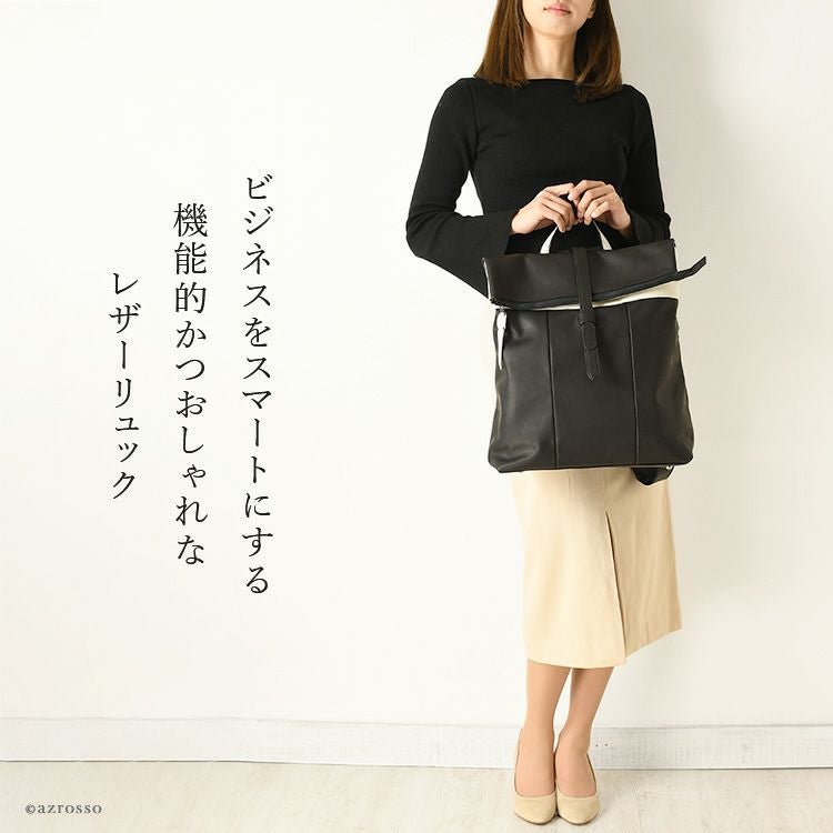 A4対応 日本製 本革レザーリュック Drop(ドロップ)大人 女性 きれいめ おしゃれ かっこいい 軽量 軽い 黒 ブラック ビジネス 通勤 仕事 自転車通勤にも