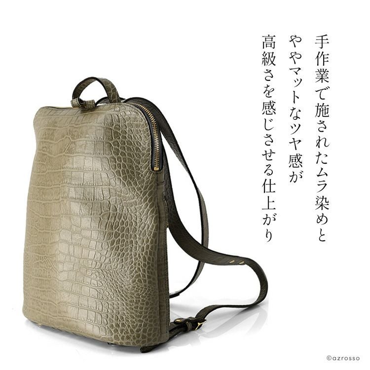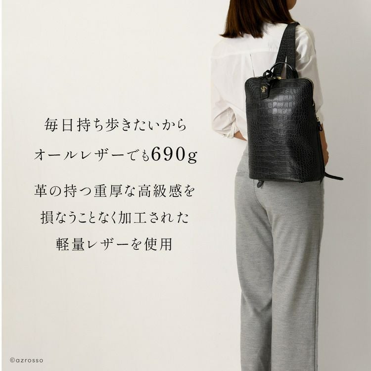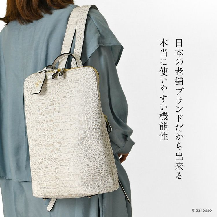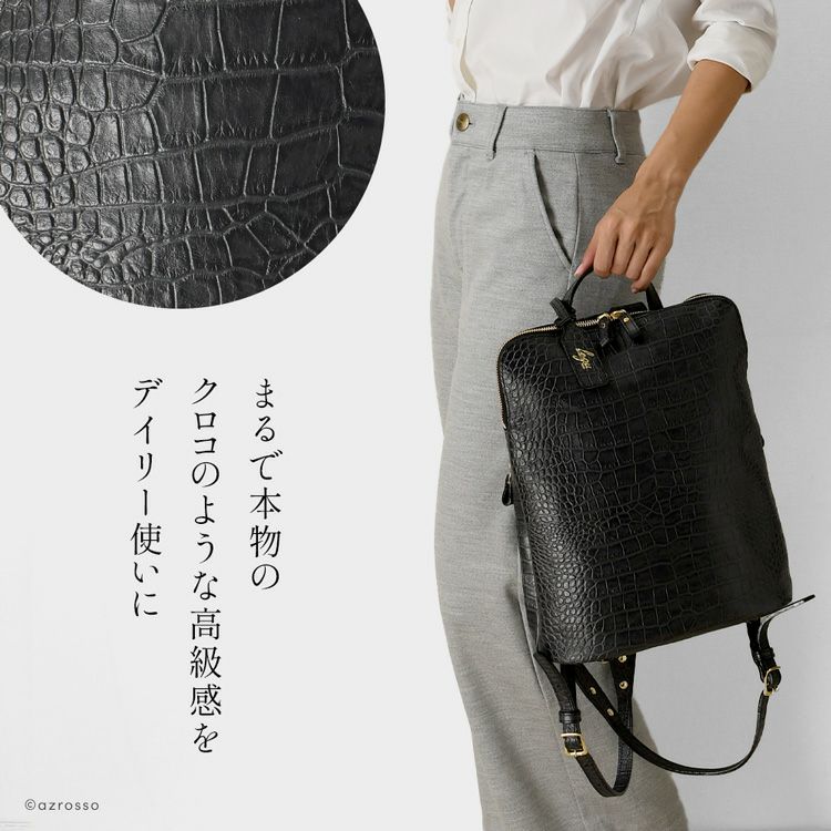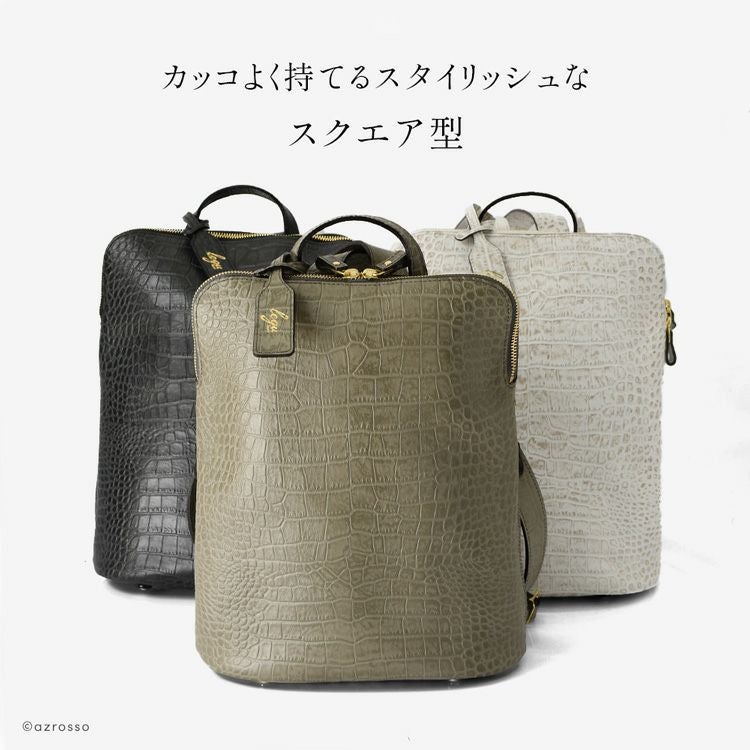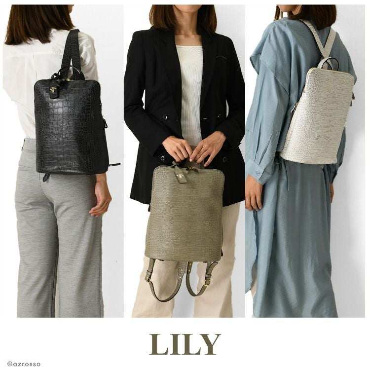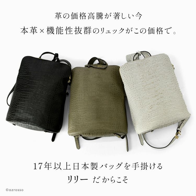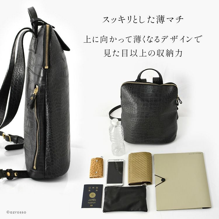 クロコ型押し レザーリュック 薄マチ a4 本革 スクエア ビジネスリュック 軽量 背面ポケット付き 黒 白 茶色 日本製 ブランド LILY リリー レディース