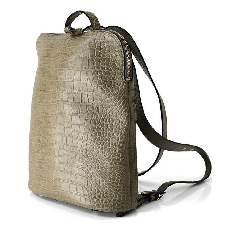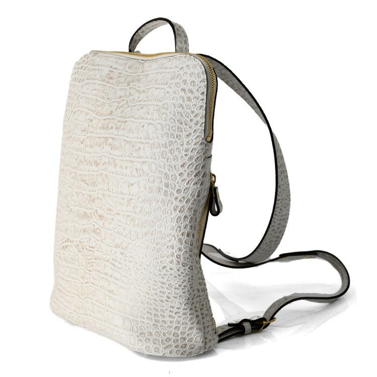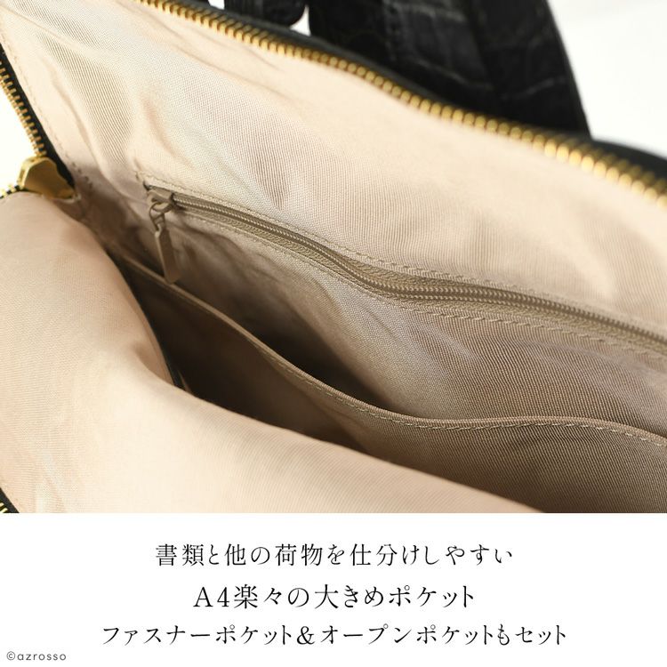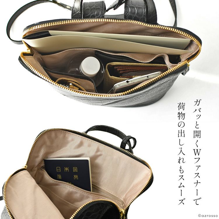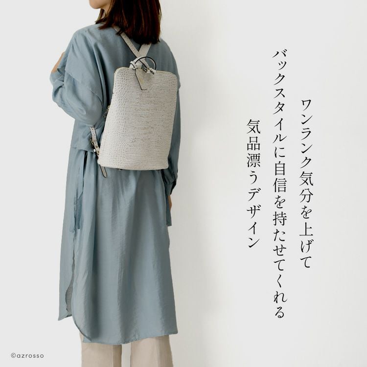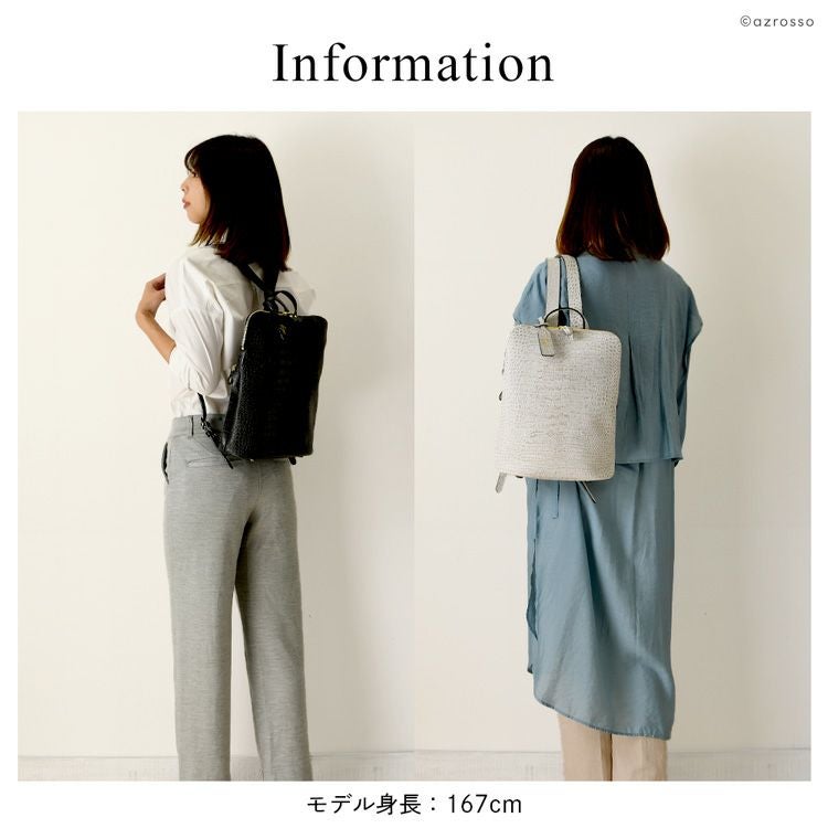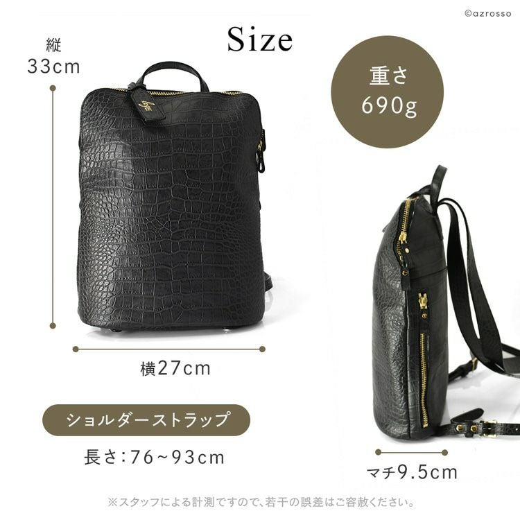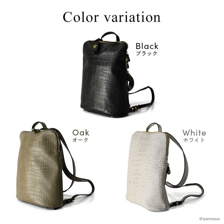クロコ型押し レザーリュック 薄マチ a4 本革 スクエア ビジネスリュック 軽量 背面ポケット付き 黒 白 茶色 日本製 ブランド LILY リリー レディース