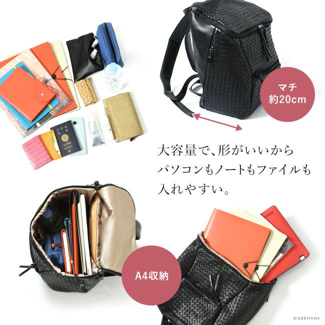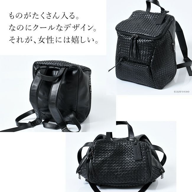 イタリア製 イントレチャート レザーリュック A4もパソコンも入る 軽量 おしゃれ 大容量 ビジネス 仕事 通勤に 黒 ブラック 本革 女性 PC 大人 ブランド きれいめ
