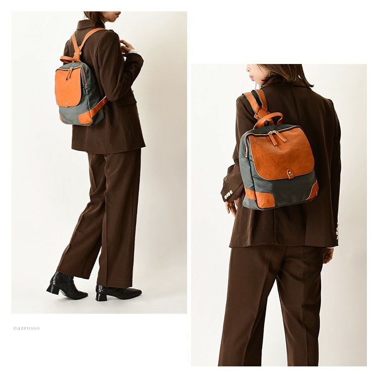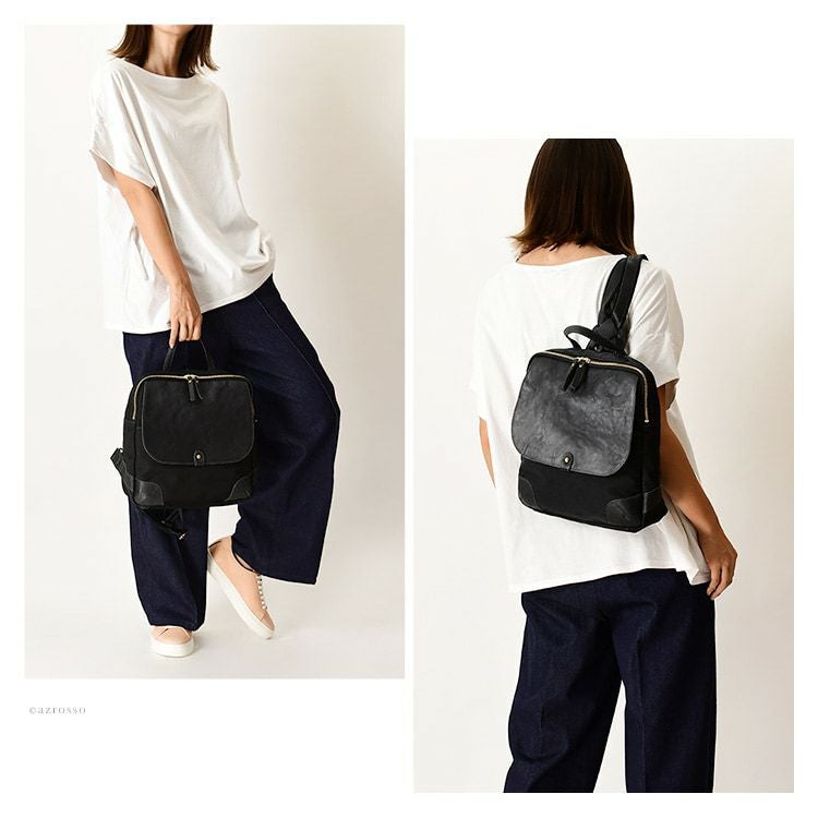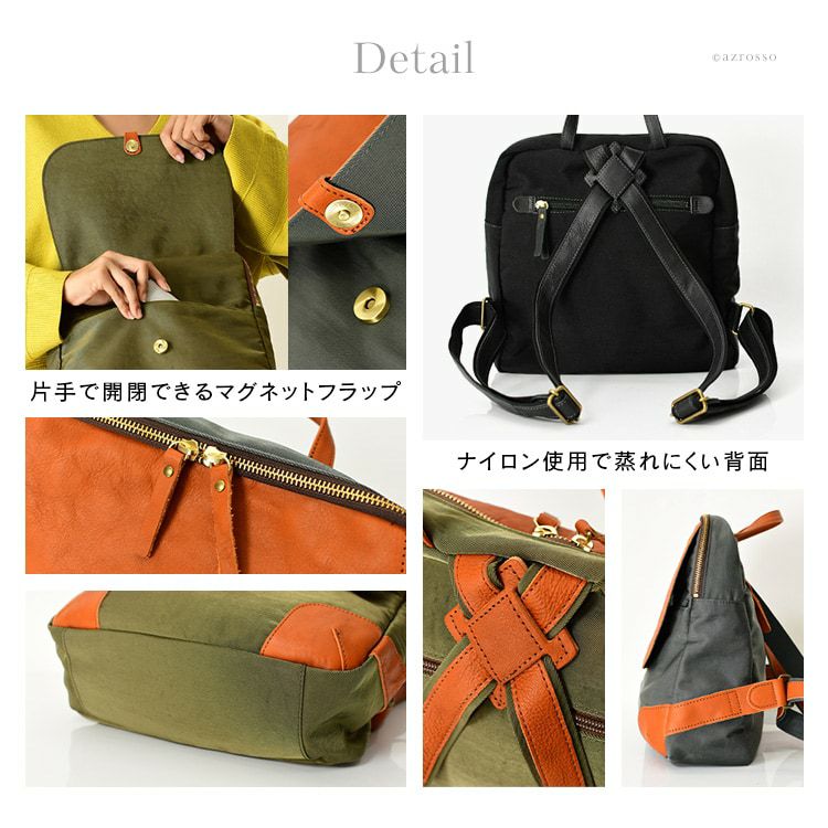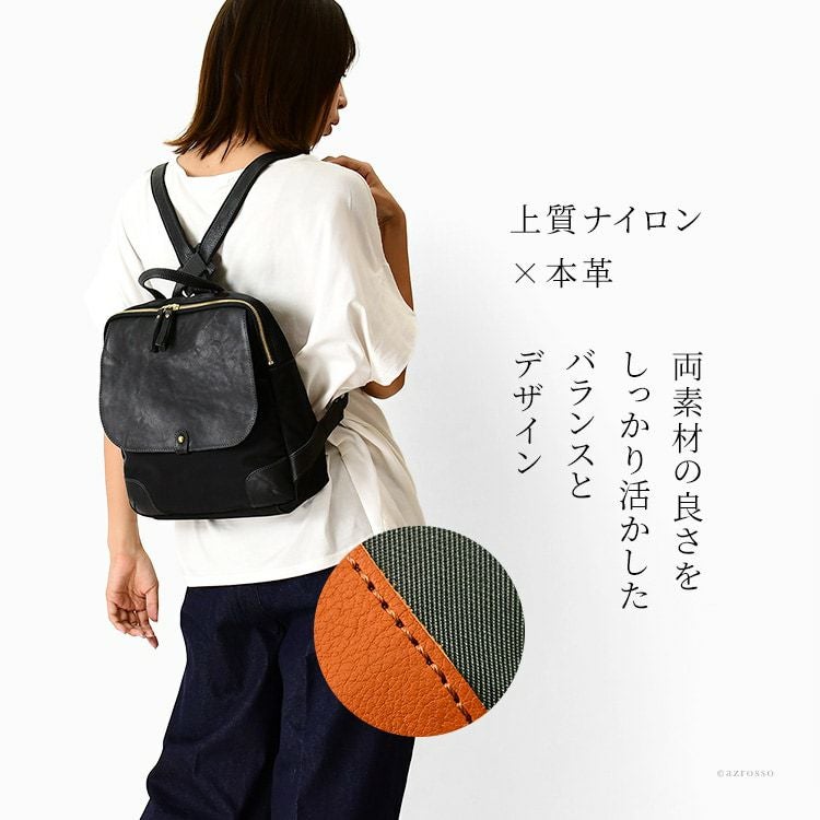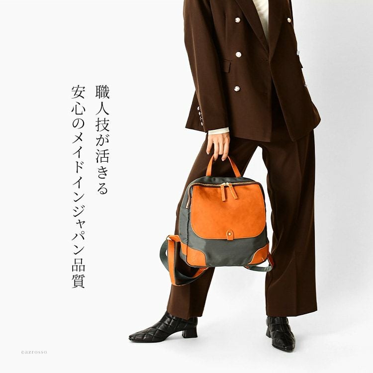 日本製 リュック ナイロン レザー 軽量 a4 背面ポケット なで肩対応 黒 キャメル グレー カーキ きれいめ レディース