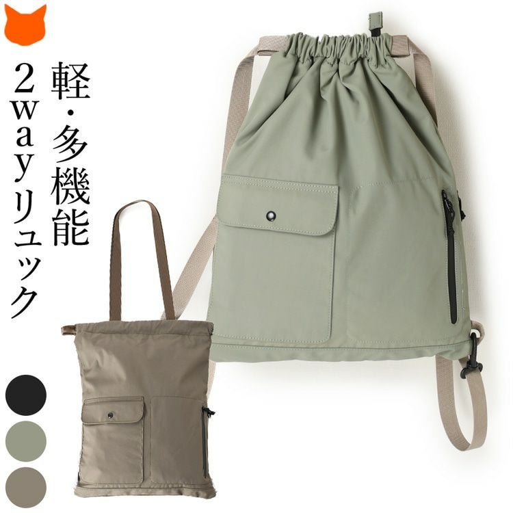 ナイロン ナップザック 500g以下 軽量 多収納 軽い 2WAY トートバッグ 縦型 デイパック リュックサック