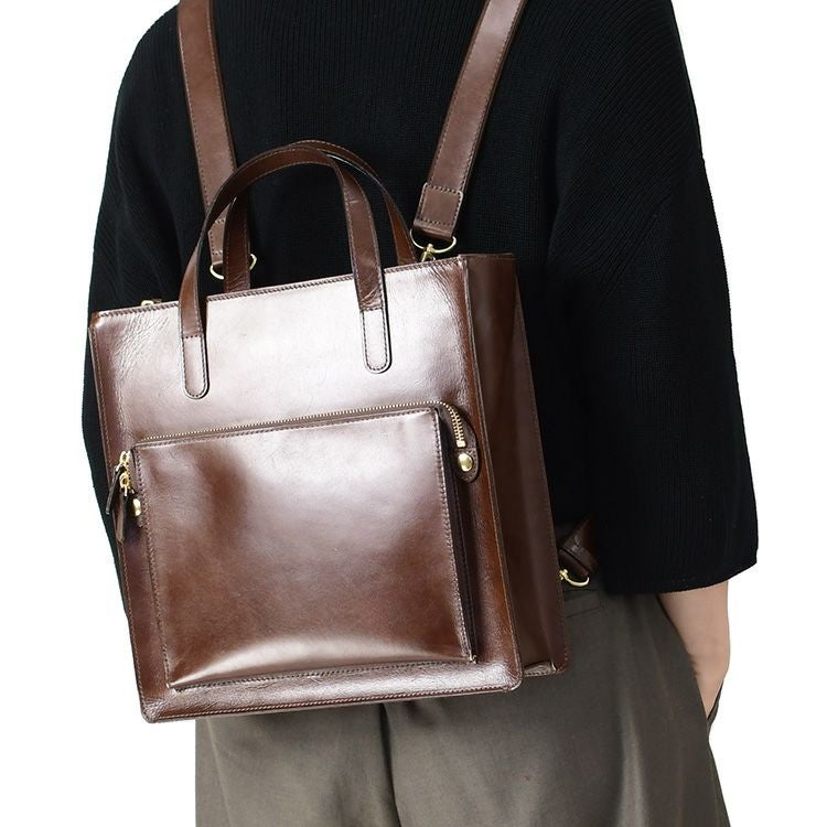 ▼特徴:スクエア型 リュックサック 牛革 無地 レザー 軽量 軽い ファスナー シンプル おしゃれ ダンディ 大人 クラシカル シック 手持ち ハンドバッグ 自立 B5収納