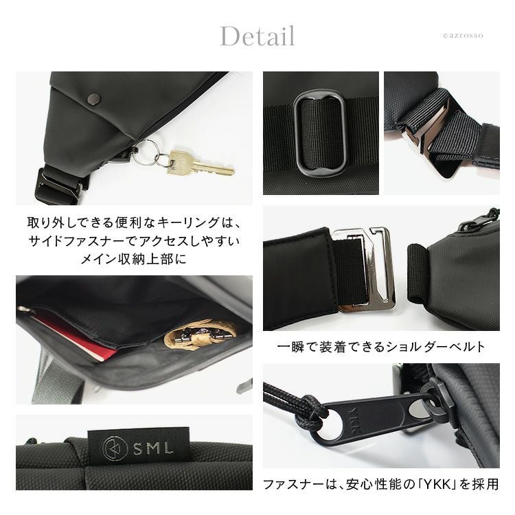 防水ナイロン素材を使ったSMLのスリムなボディバッグで、スポーツやアウトドアをオシャレに楽しみませんか ナイロン ボディバッグ レディース SML ブラック ウエストポーチ 斜め掛け ファスナー ポケット 多め 長財布が入る