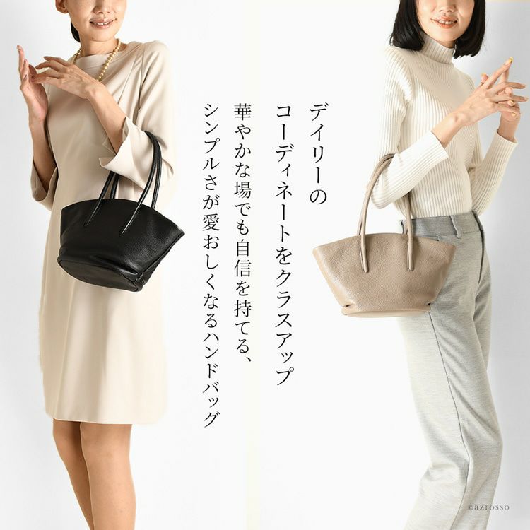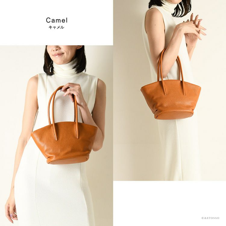 丁寧なつくりと機能性に定評のあるWith(ウィズ)のコンパクトサイズのトートバッグ。細かなシボ革の風合いを活かした、ふんわりと丸みを帯びた優しいシルエット、計算された長めのハンドルで肩掛けしやすい 本革 トートバッグ 小さめ ハンドバッグ ミニバッグ レザー 肩掛け 日本製 ブランド 自立 天ファスナー ファスナー付きポケット オーク