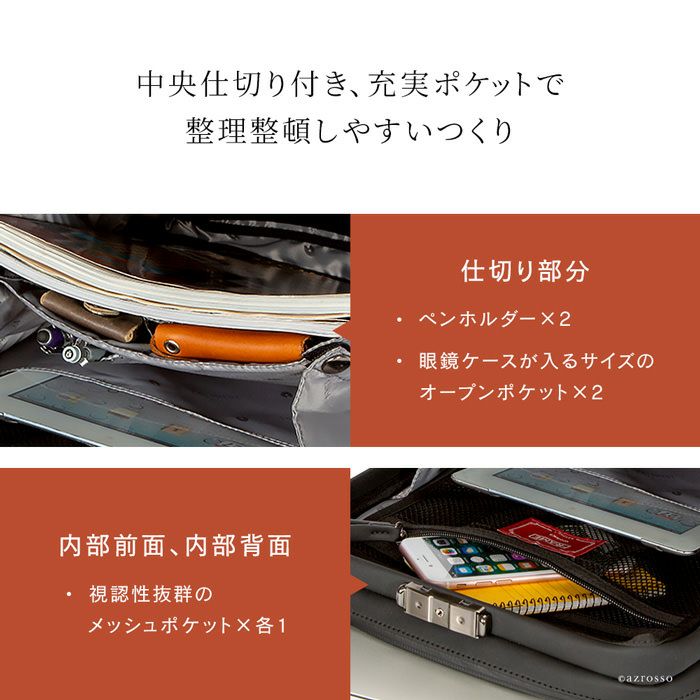 内装:ファスナーポケット×2、フリーポケット×3、ペンホルダー×2