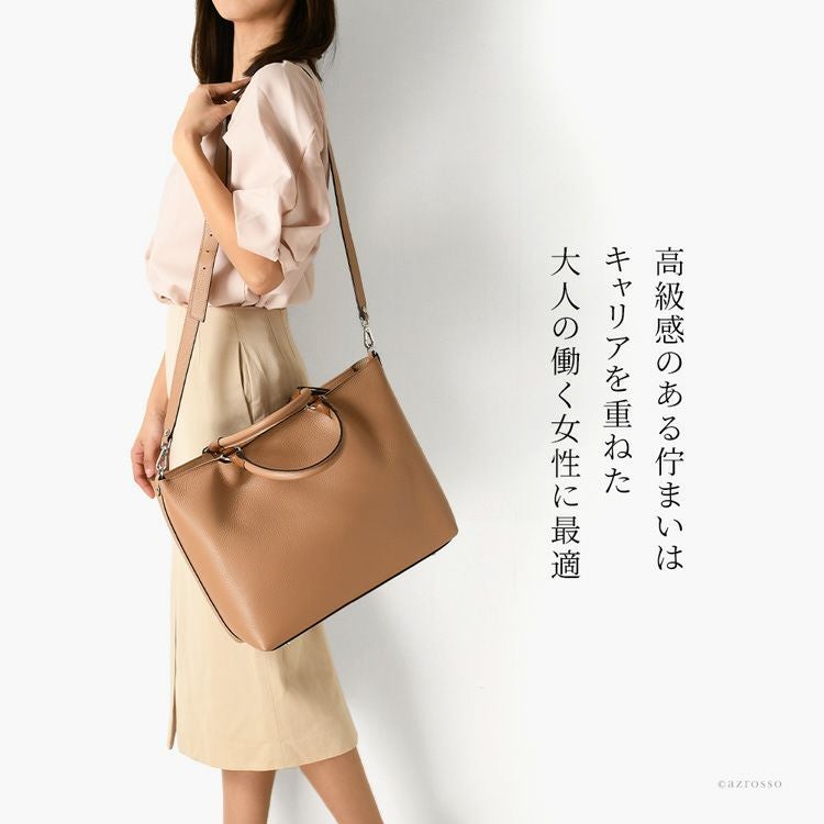 通勤バッグ a4 トートバッグ 通勤 2way 大容量 ポーチ 肩掛け ショルダーバッグ トート ショルダー 大きめ 横 本革 レザー 斜めがけ バッグ ビジネスバッグ 自立 底鋲 黒 ブラック ベージュ イタリア製 レディース