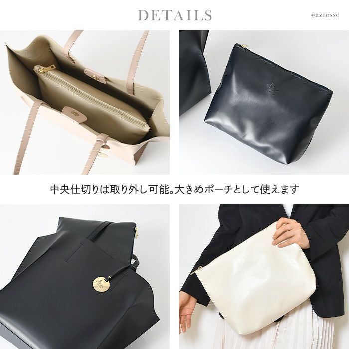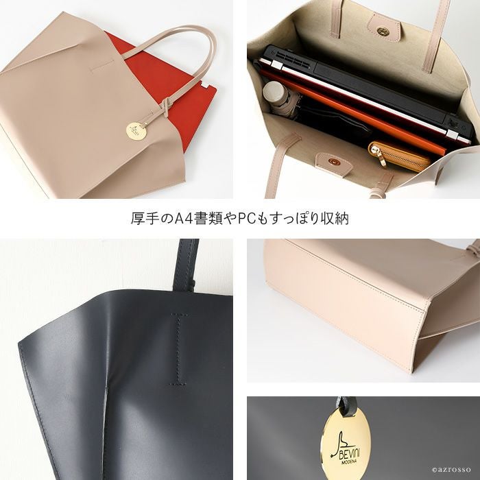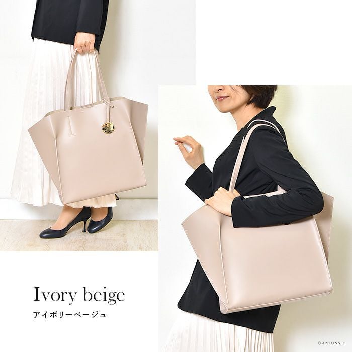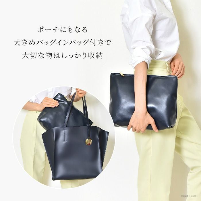 2way トートバッグ A4収納 本革 ビジネスバッグ レザー ネイビー 紺 アイボリー ベージュ イタリア製 バッグインバッグ付き