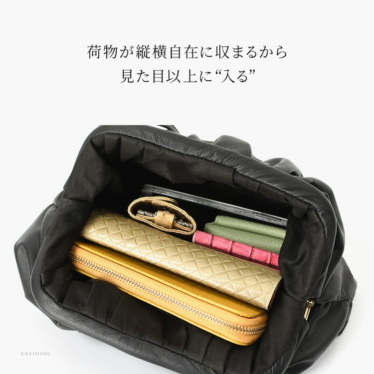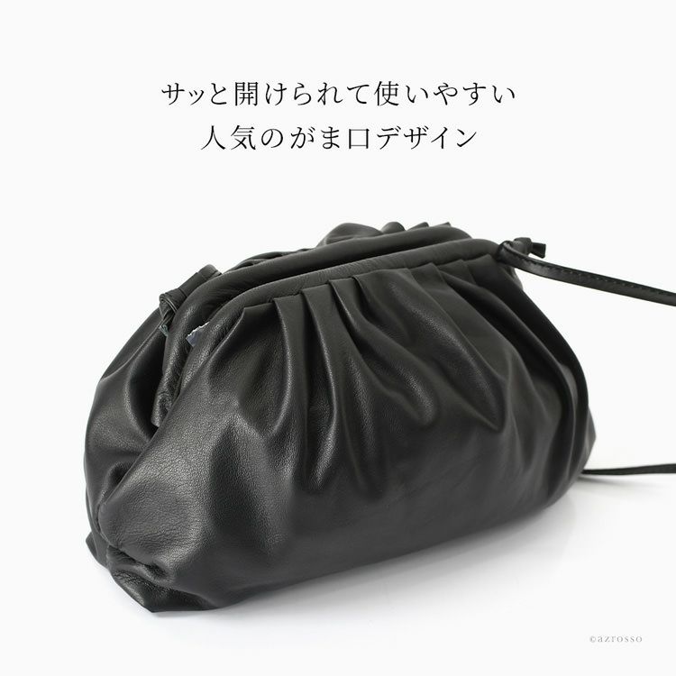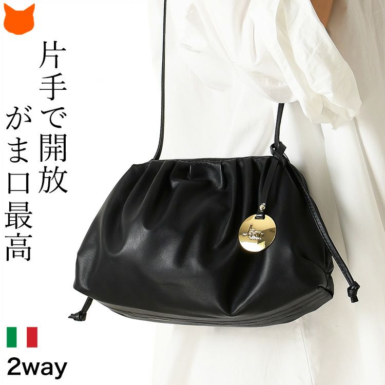 本革 がま口バッグ ショルダーバッグ 斜めがけ 小さめ 2way ポシェット レザー 軽量 軽い ミニバッグ ショルダー ハンドバッグ 肩掛け 柔らかい バッグ 小さめバッグ 黒 ブラック イタリア製 カジュアル 大人 かわいい おしゃれ きれいめ レディース