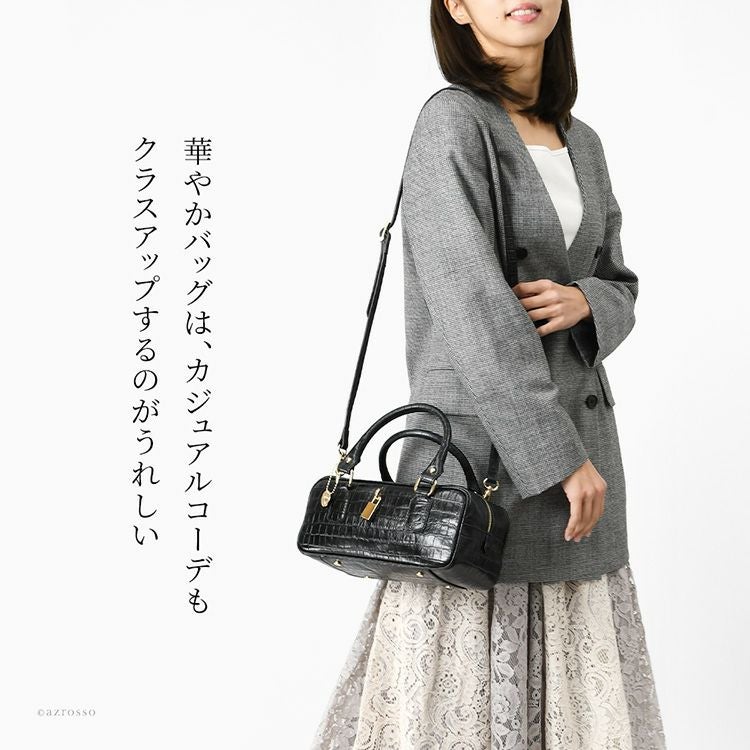 イタリア製 ショルダー ハンドバッグ 本革 小さめ 横長 クロコ柄 2way ミニ ショルダーバッグ ブランド 通勤 黒 ベージュ おしゃれ 30代 40代 50代