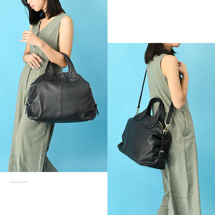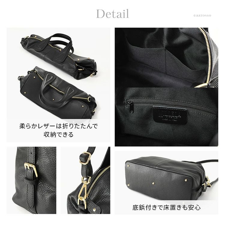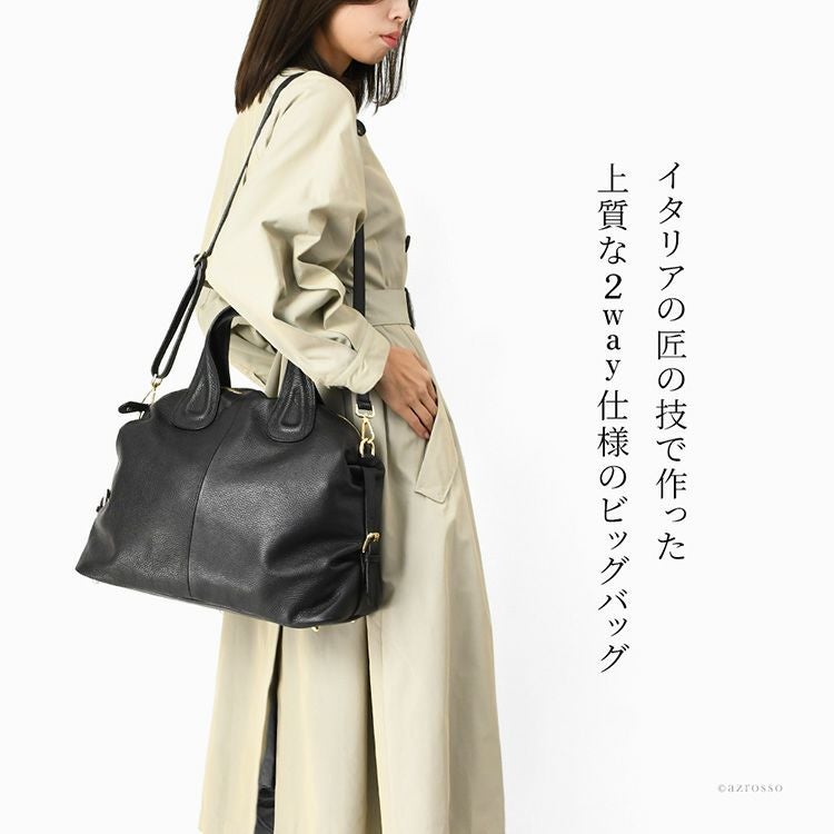 ▼特徴:ボストンバッグ ビッグバッグ 本革 レディース ショルダーバッグ ハンドバッグ 2way イタリア製 レザー ボストン おしゃれ 女性 ブラック 黒 ファスナー 底鋲 くったり 柔らかい 革