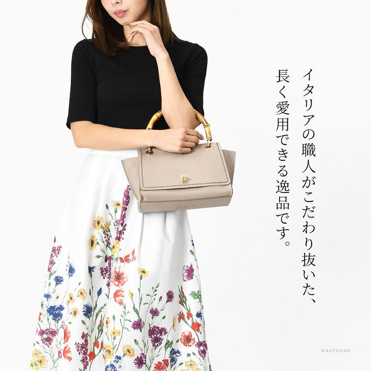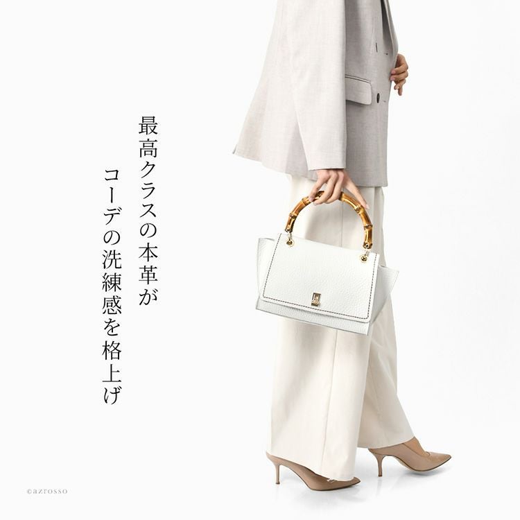 ▼特徴:バンブーハンドル バッグ 竹 持ち手 イタリア製 レザー 高級 ハンドバッグ フラップ 付き ショルダーバッグ 2way 軽量 ショルダー おしゃれ 大人 女性 マチ広 トープ ベージュ グレー アイボリー ホワイト 肩掛け 斜めがけ 斜め掛け きれいめ 上品 イタリア ブランド 軽い 竹ハンドル