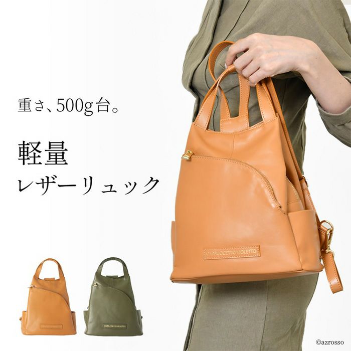 柔らかく、しっとりしていて、薄くても弾力に富むから、レザーリュックなのに、重さはなんと500g台。
