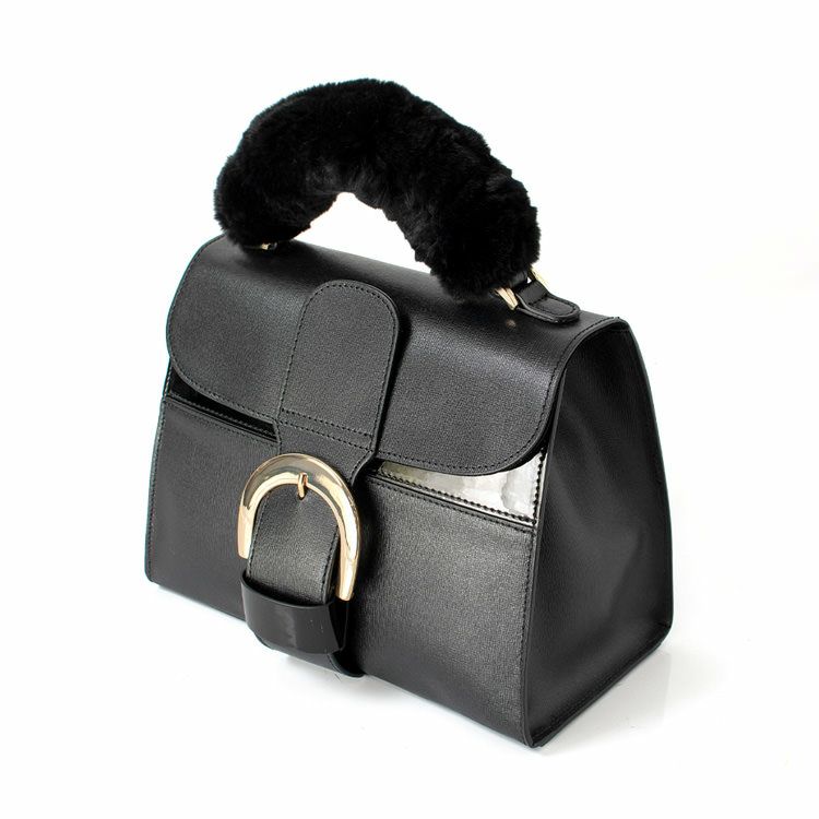 手袋いらずの暖かさ。もふもふな手触りがヤミツキなラビットファーハンドルのハンドバッグをイタリア製 Cappuccetto Violetto(カプチェット ヴィオレット) mizconi ミズコニ ファーハンドル バッグ イタリア製 本革 ハンドバッグ 2way イタリアブランド 肩掛け かぶせハンドバッグ スクエア型 黒 ブラック 冬 ラビットファー