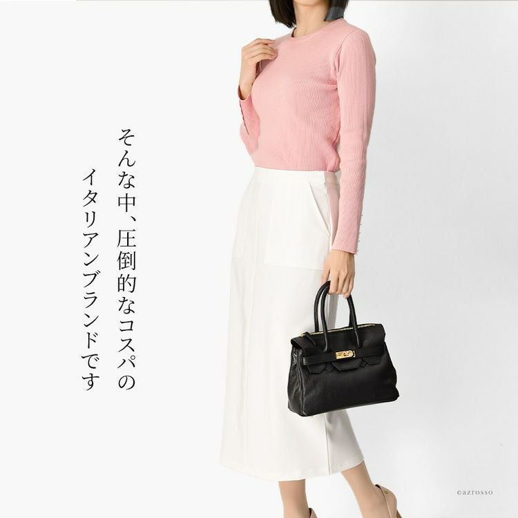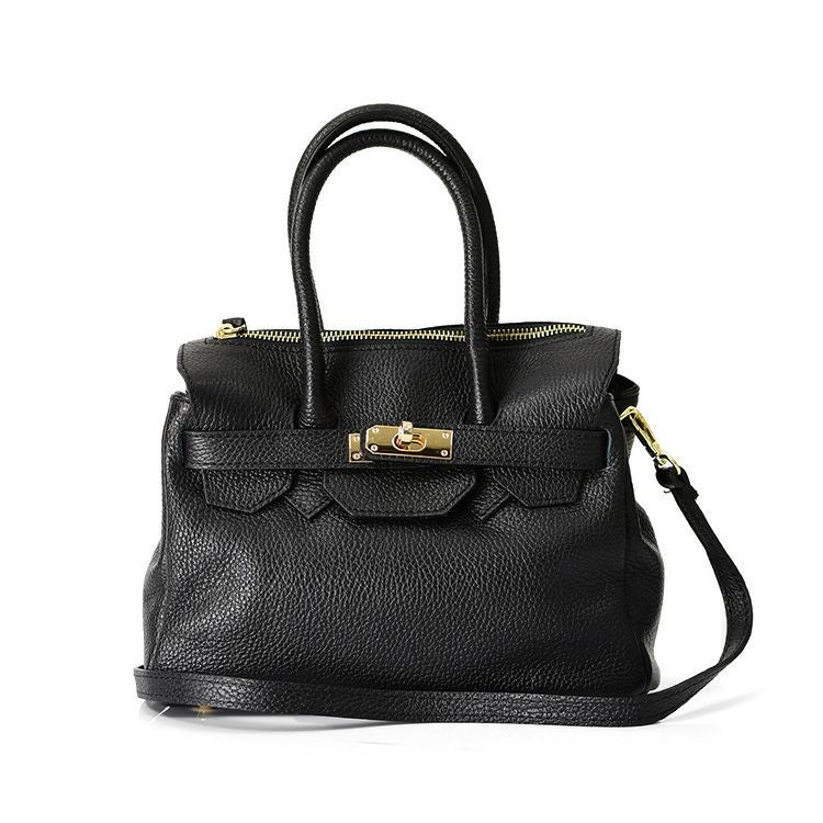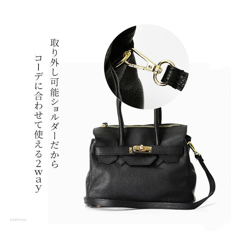イタリア製 バーキン風 ハンドバッグ 本革 2way ミニショルダー バッグ 小さめ レディース ブランド イタリアンレザー ブラック 黒 カジュアル