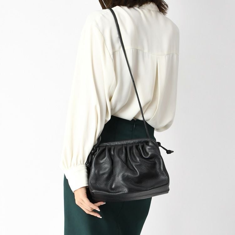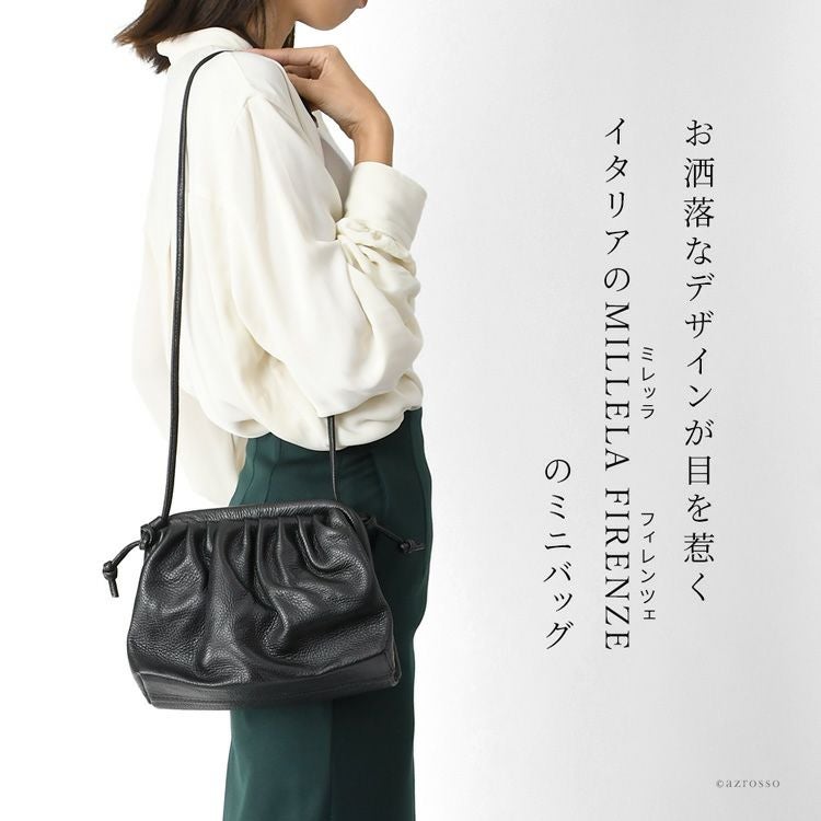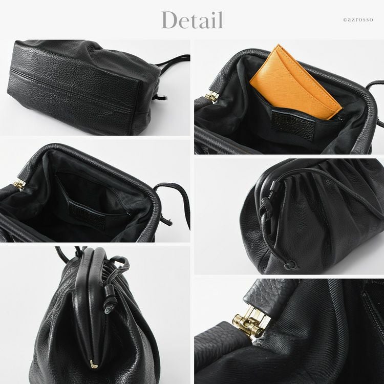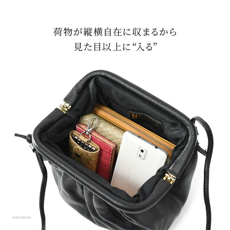 本革 がま口バッグ ショルダーバッグ 斜めがけ 小さめ 2way ポシェット レザー 軽量 軽い ミニバッグ ショルダー ハンドバッグ 肩掛け 柔らかい バッグ 小さめバッグ 黒 ブラック イタリア製 カジュアル 大人 かわいい おしゃれ きれいめ mil10200562