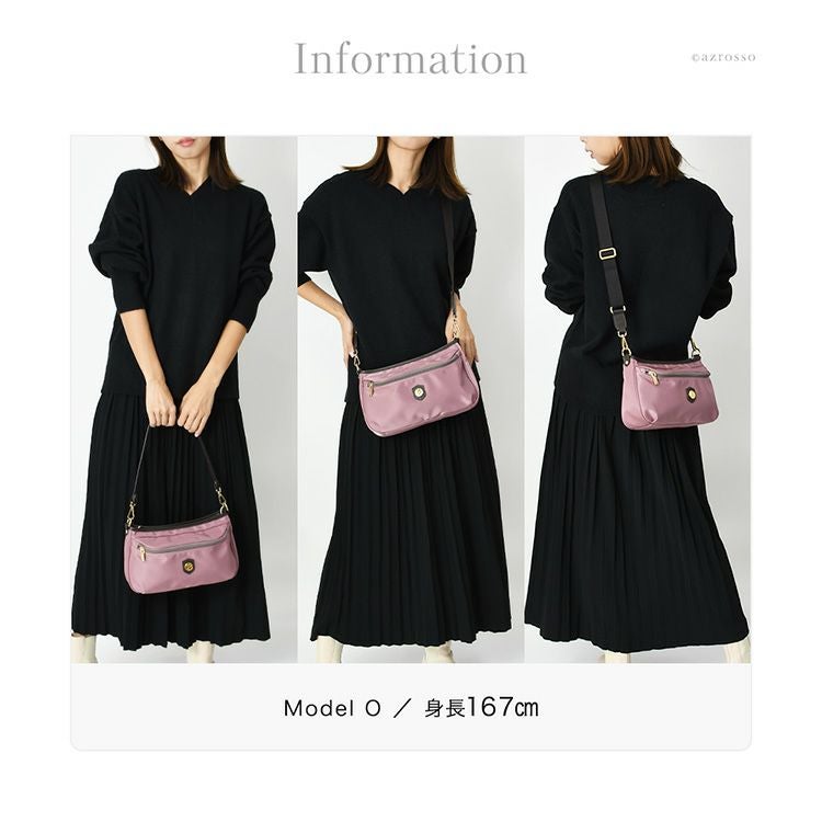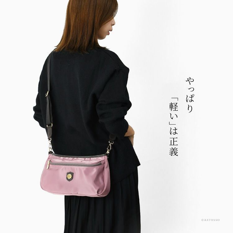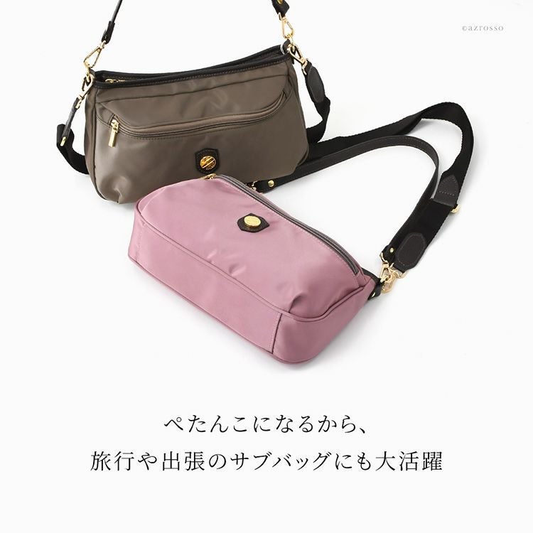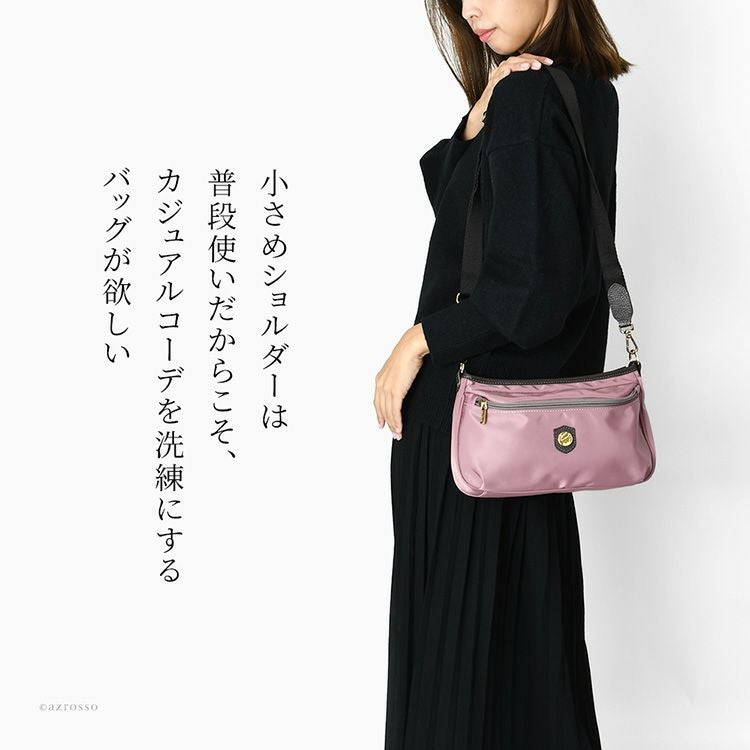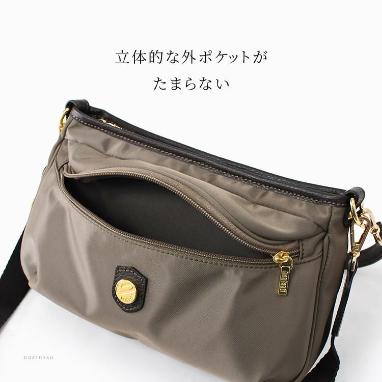 リュクスなイタリア製リモンタナイロンの小さめショルダーバッグ。立体的な外ポケットも魅力。普段使いにも旅行のサブバッグにも丁度良いサイズ。上質なナイロンショルダーを持ちませんか イタリア製 ショルダーバッグ レディース リモンタナイロン ミニショルダーバッグ 小さめ おしゃれ 斜めがけバッグ ブランド レザー 本革 2way
