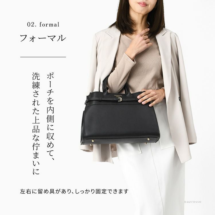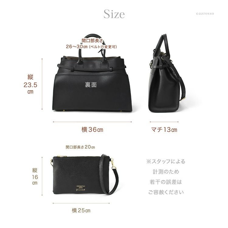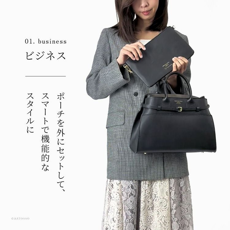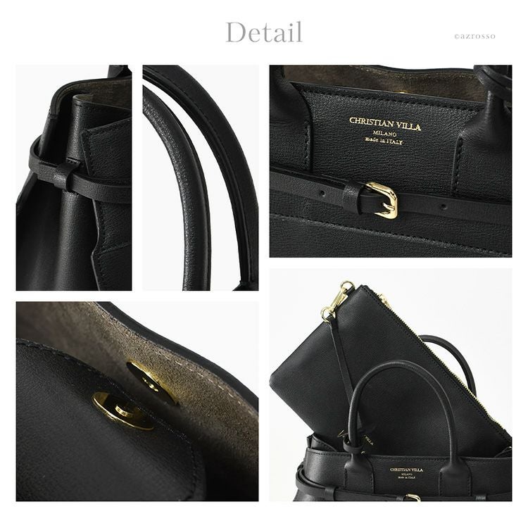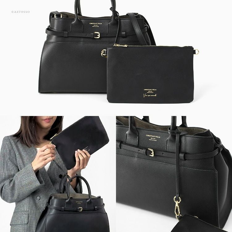 ▼特徴:ミニトートバッグ イタリア ブランド レザーショルダー バッグ 革 ポーチ付き 斜め掛け フォーマルバッグ ブラック 2個持ち バッグ セット きれいめ おしゃれ