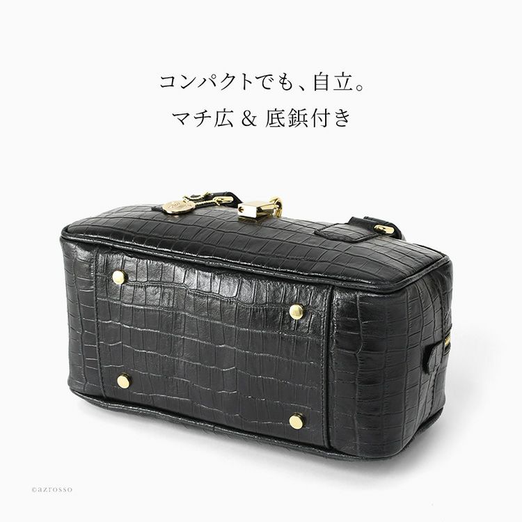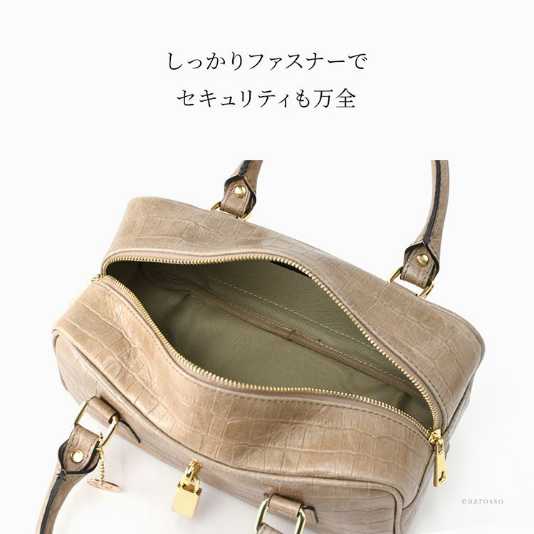 ▼特徴:イタリア製 ハンドバッグ クロコダイル クロコ柄 型押し 本革 2way ショルダーバッグ レディース レザー ミニ バッグ ブラック トープ ブラウン 黒 茶色 ベージュ きれいめ カジュアル ブランド イタリア 肩掛け 斜め掛け