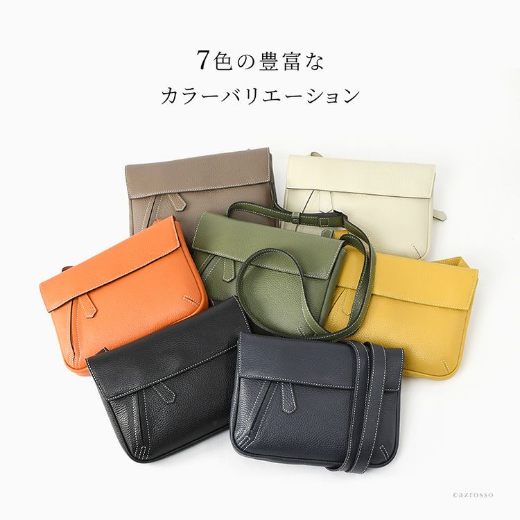 ▼特徴:本革 日本 ブランド 豊岡鞄 サコッシュ ポシェット ミニバッグ カジュアル フラップ ショルダーバッグ コンパクト 小さめ バッグ 黒ネイビー 紺 オリーブ カーキ 緑 イエロー 黄色 オレンジ トープ ベージュ オフホワイト 白 プレゼント ギフト