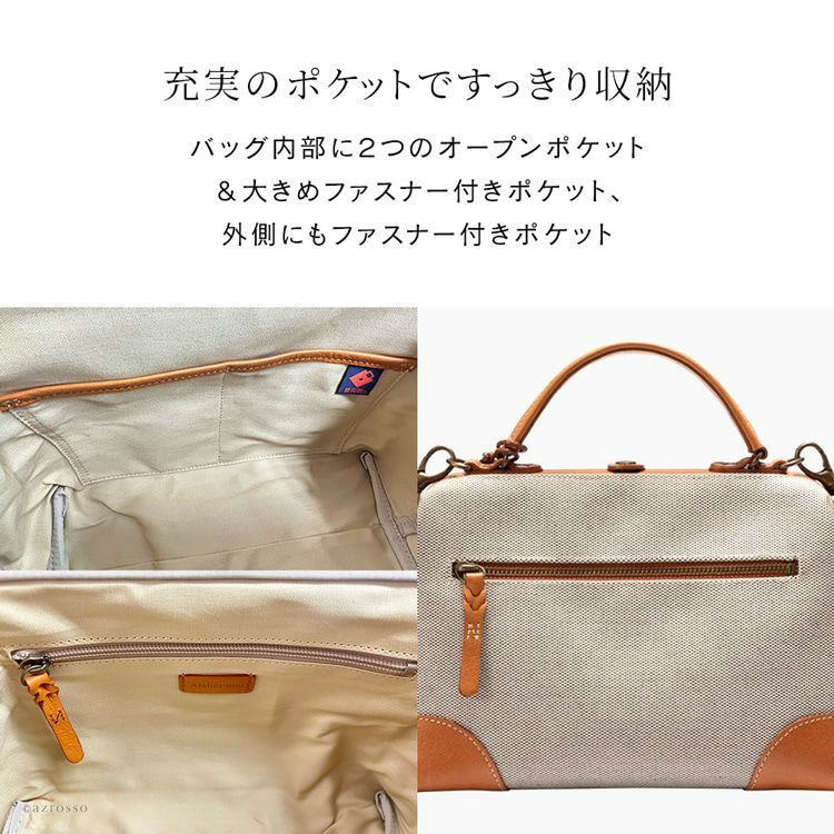 イタリア・リモンタ社のコットンシャンブレー帆布を使用した、収納力抜群のミニダレスバッグを、豊岡生まれのブランドAtelier nuu(アトリエ ヌウ)より。ハンドバッグ、ショルダーバッグとして使える2way ワンタッチで開く ダレスバッグ ミニ ショルダーバッグ 2way ハンドバッグ 本革 コットン バッグ がま口 日本製 豊岡鞄 Atelier nuu アトリエ ヌウ ブラック キャメル ベージュ ミニバッグ