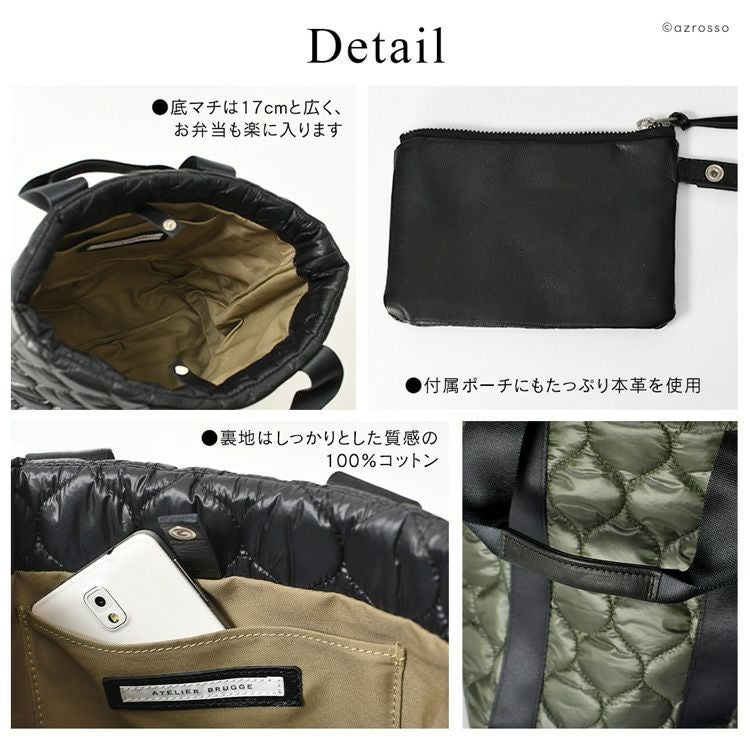 小さめ トート バッグ ナイロン キルティングバッグ 日本製 ハンドバッグ マチが広い 17cm カジュアル おしゃれ ブランド 軽い 丈夫 舟型 自立 アトリエブルージュ