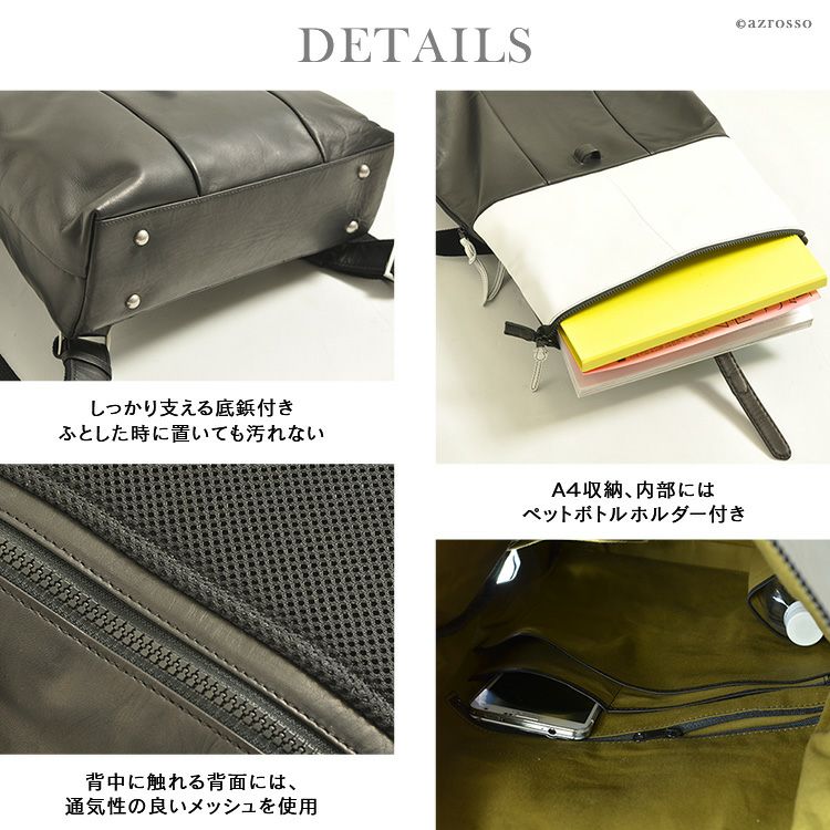 A4対応 日本製 本革レザーリュック Drop(ドロップ)大人 女性 きれいめ おしゃれ かっこいい 軽量 軽い 黒 ブラック ビジネス 通勤 仕事 自転車通勤にも