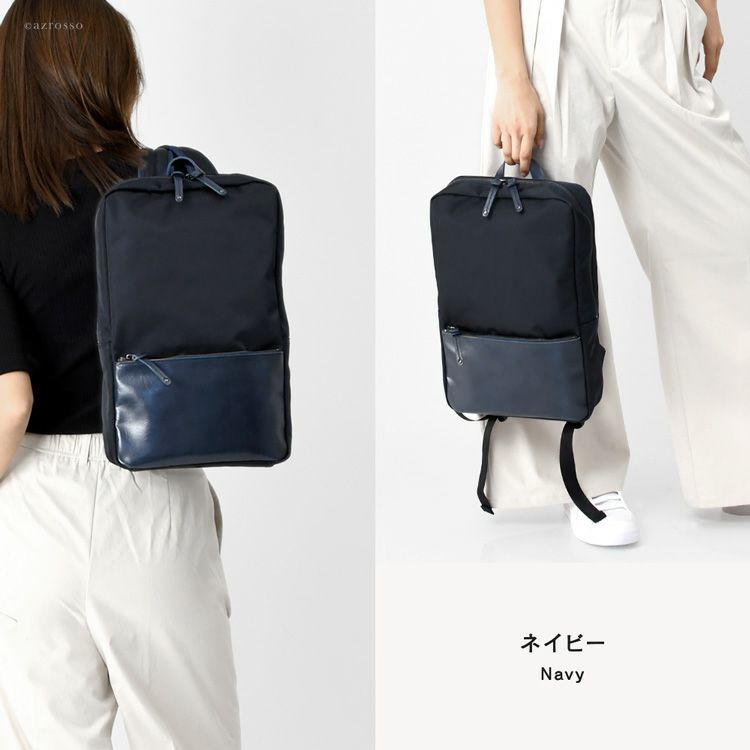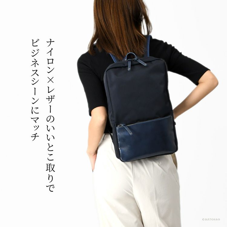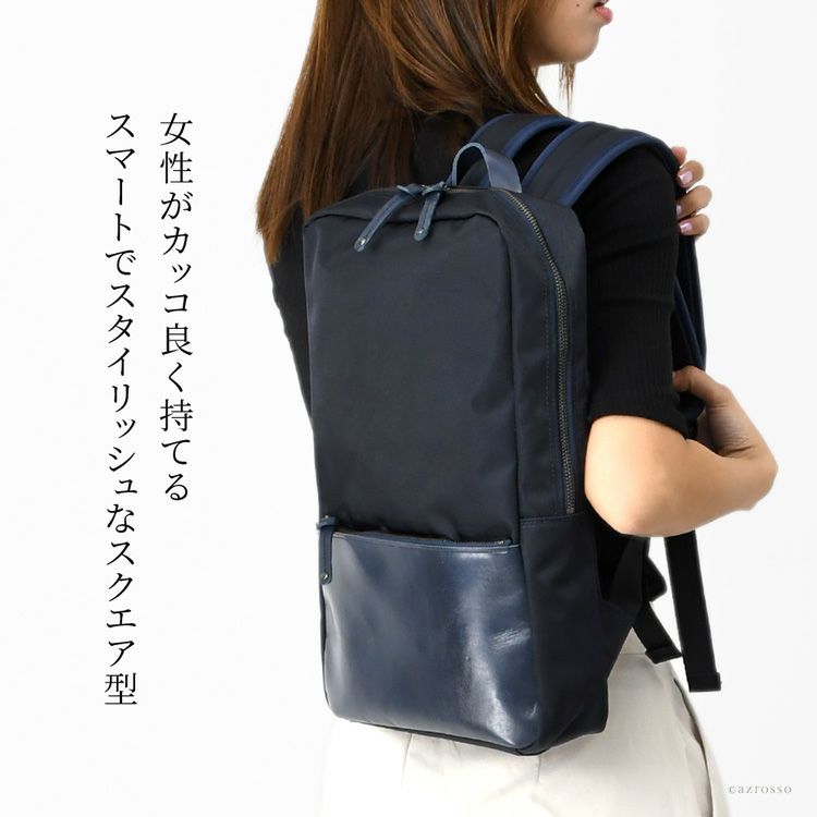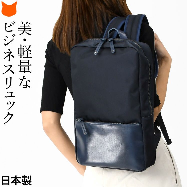 日本製 ナイロン レザー リュック 500g以下 軽量 薄型 PC収納 軽い ビジネスリュック レディース ネイビー 紺