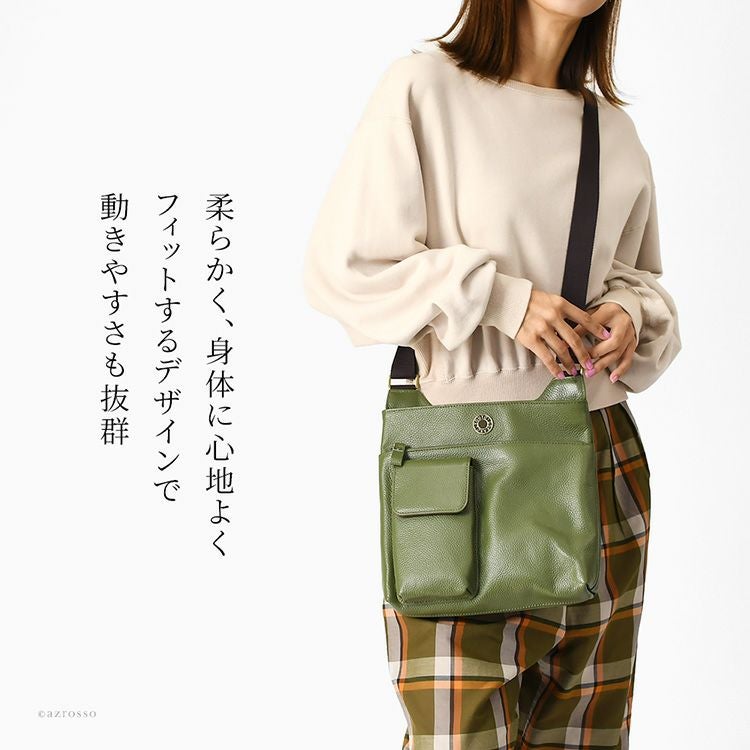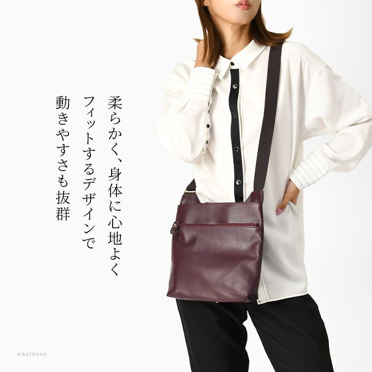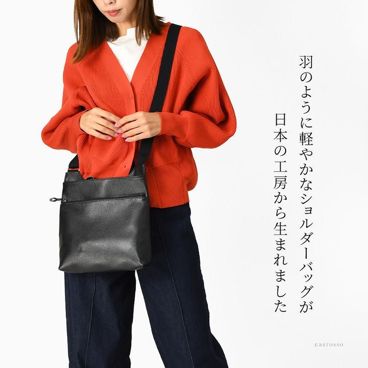 本革なのに驚くほど軽い。身体に心地よくフィットする豊岡工房のロングセラーソフトショルダーバッグ。500mlペットボトルがすっぽり入るサイズ感。日本製なのに驚きのプライスのレディースバッグ 日本製 ショルダーバッグ 軽い ソフト 斜めがけ 牛革 ブラック オリーブ キャメル パープル 豊岡 鞄 ブランド 豊岡工房 レディース