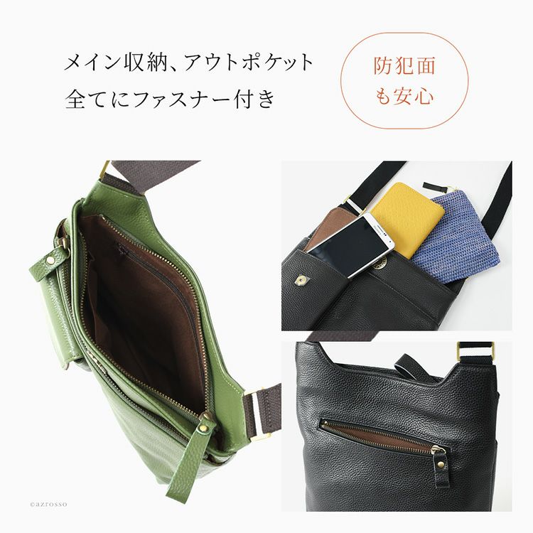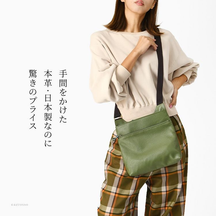 ダブルファスナーが使いやすい豊岡工房の牛革ミニバッグ。軽量で使いやすい太マチのショルダーバッグ、日本製・本革なのに驚きのプライスです 日本製 ショルダーバッグ 軽い 斜めがけ 牛革 ミニバッグ ダブルファスナー ブラック グリーン キャメル ベージュ 豊岡 鞄 ブランド 豊岡工房 レディース