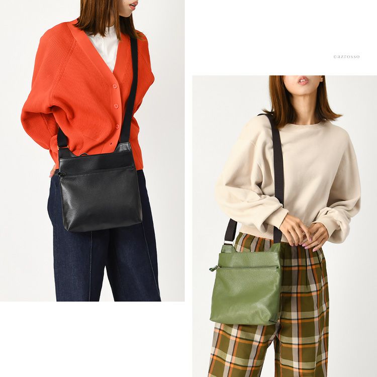 スタイリッシュな大人サコッシュ。日本製ブランド豊岡鞄のオットロッシより。ショルダーバッグとして、クラッチとして、バッグインバッグとして。3way、4wayの大活躍 サコッシュ バッグ ショルダーバッグ レディース ブランド 斜めがけ 2way 本革 日本製 豊岡鞄 薄マチ 黒 紺 ブラウン イエロー 白 赤 トープ グレー オフホワイト