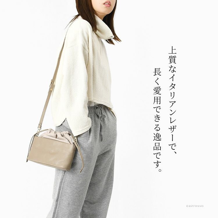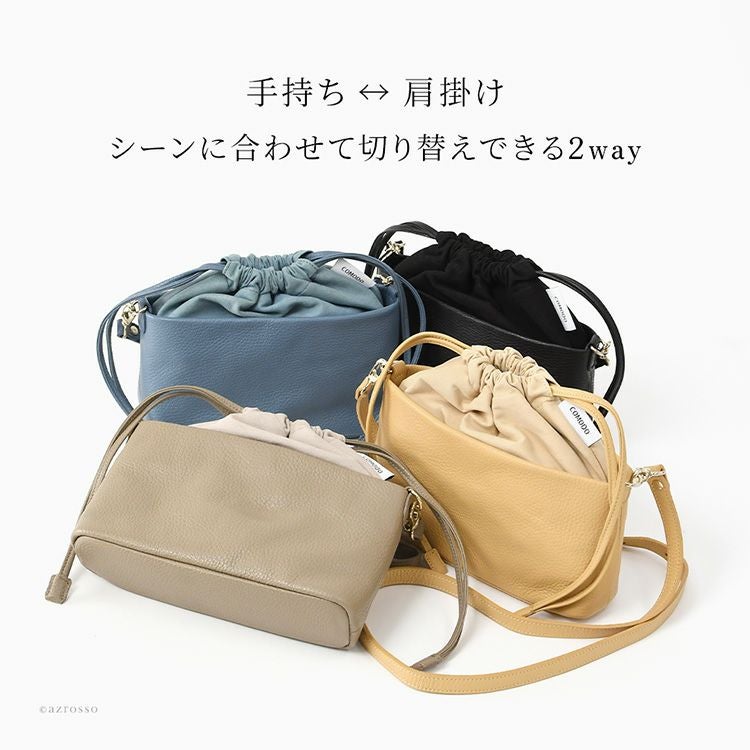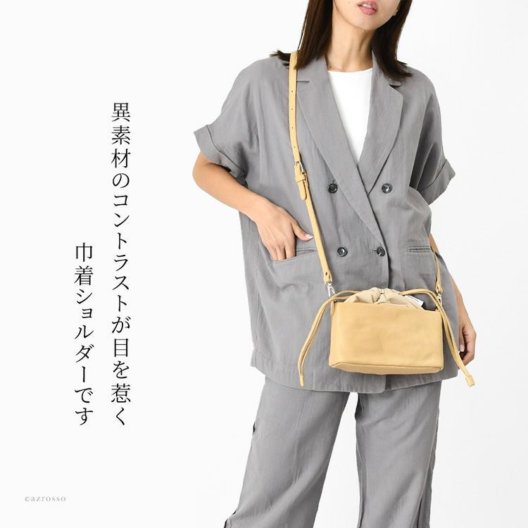 日本製 巾着バッグ レディース 2way ミニ ショルダーバッグ おしゃれ レザー 斜めがけ 本革 小さめ 軽量 巾着 ショルダー ポシェット ドロストバッグ