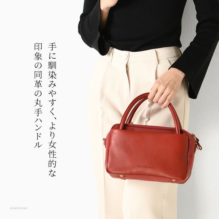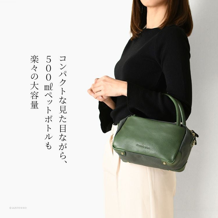 ▼特徴:ミニマル マチ広 ミニボストン ストラップ付き ヌメ革