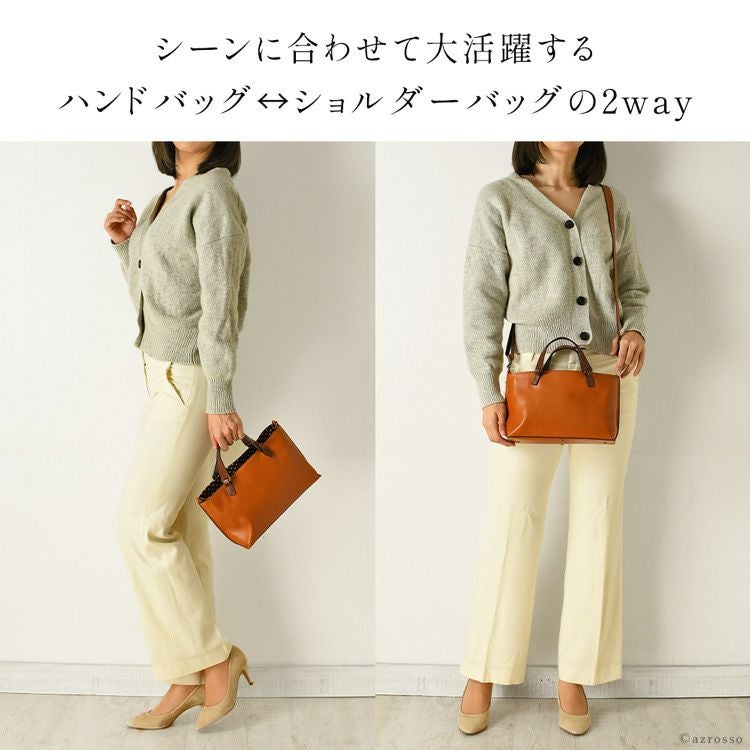 レザー ハンドバッグ 小さめ ミニバッグ 自立 軽量 ミニトート バッグ 2way ミニショルダー 本革 黒 キャメル 赤 オーク 日本製 ブランド LILY リリー サーチ レディース