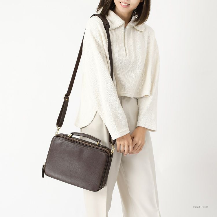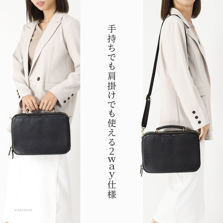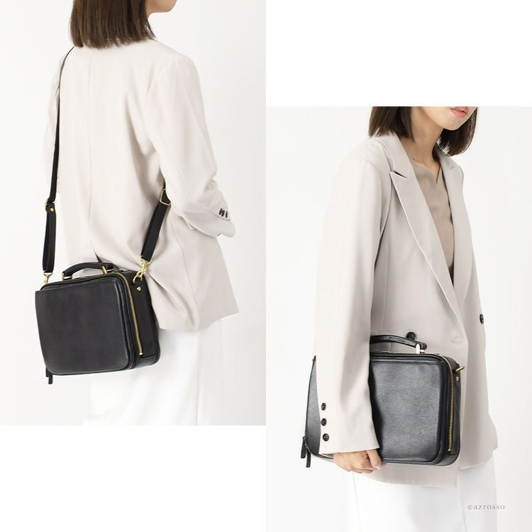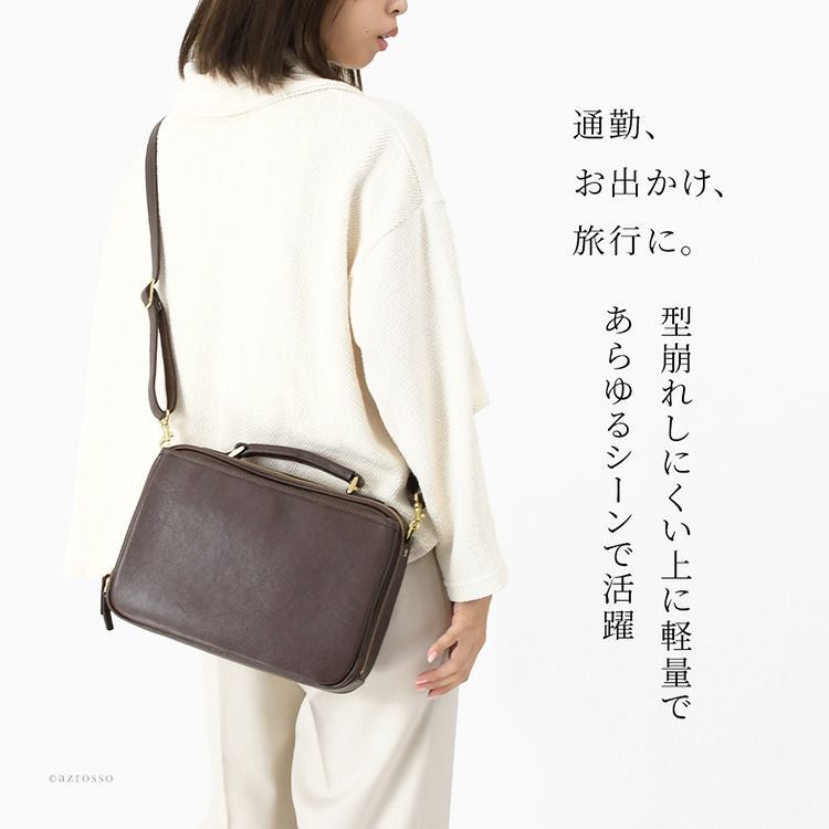 日本製 本革 ショルダーバッグ 2way 横型 ボックス型 ブラック ブラウン レディース レザー ビジネスバッグ 服部 豊岡 鞄 通勤 斜め掛け 肩掛け